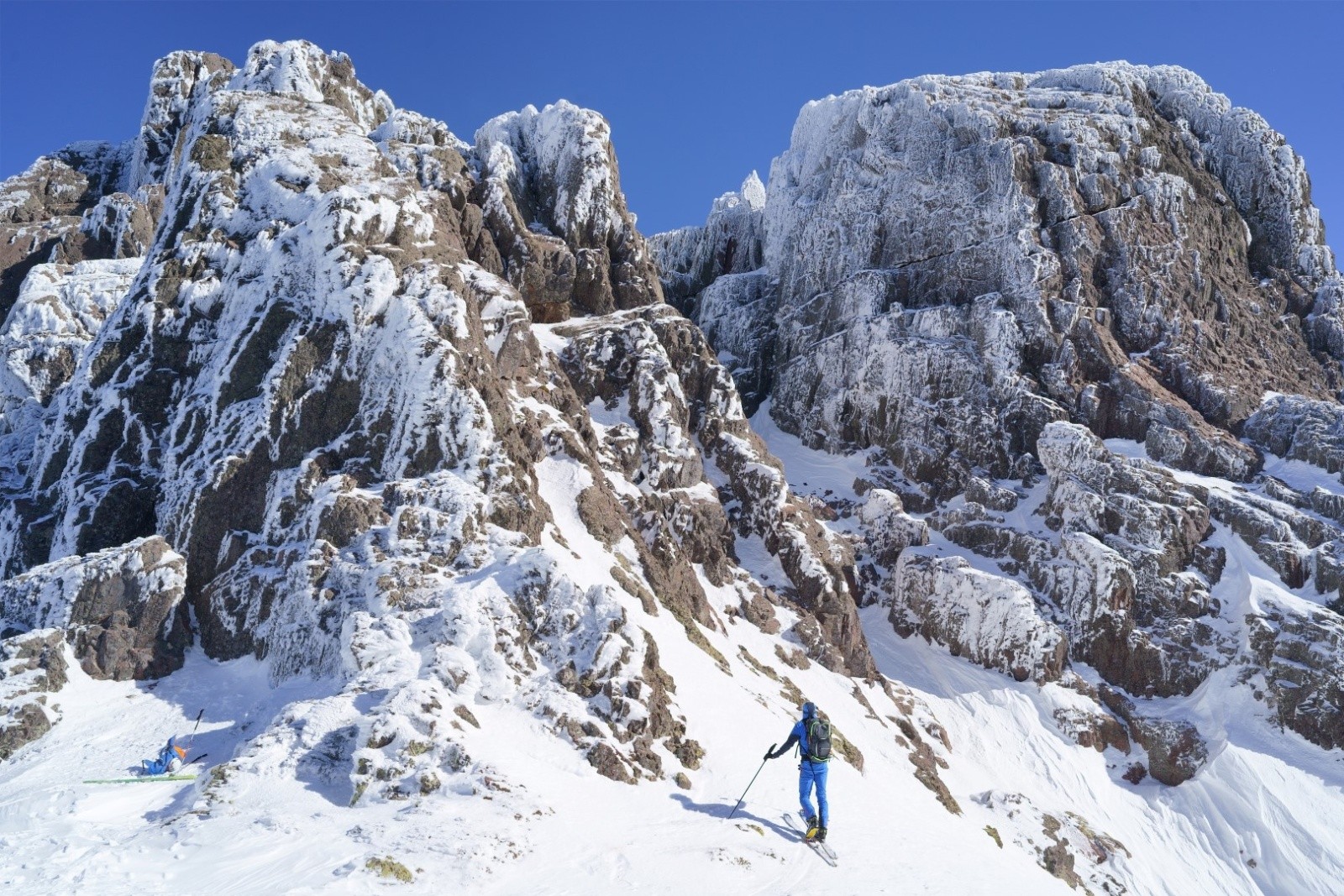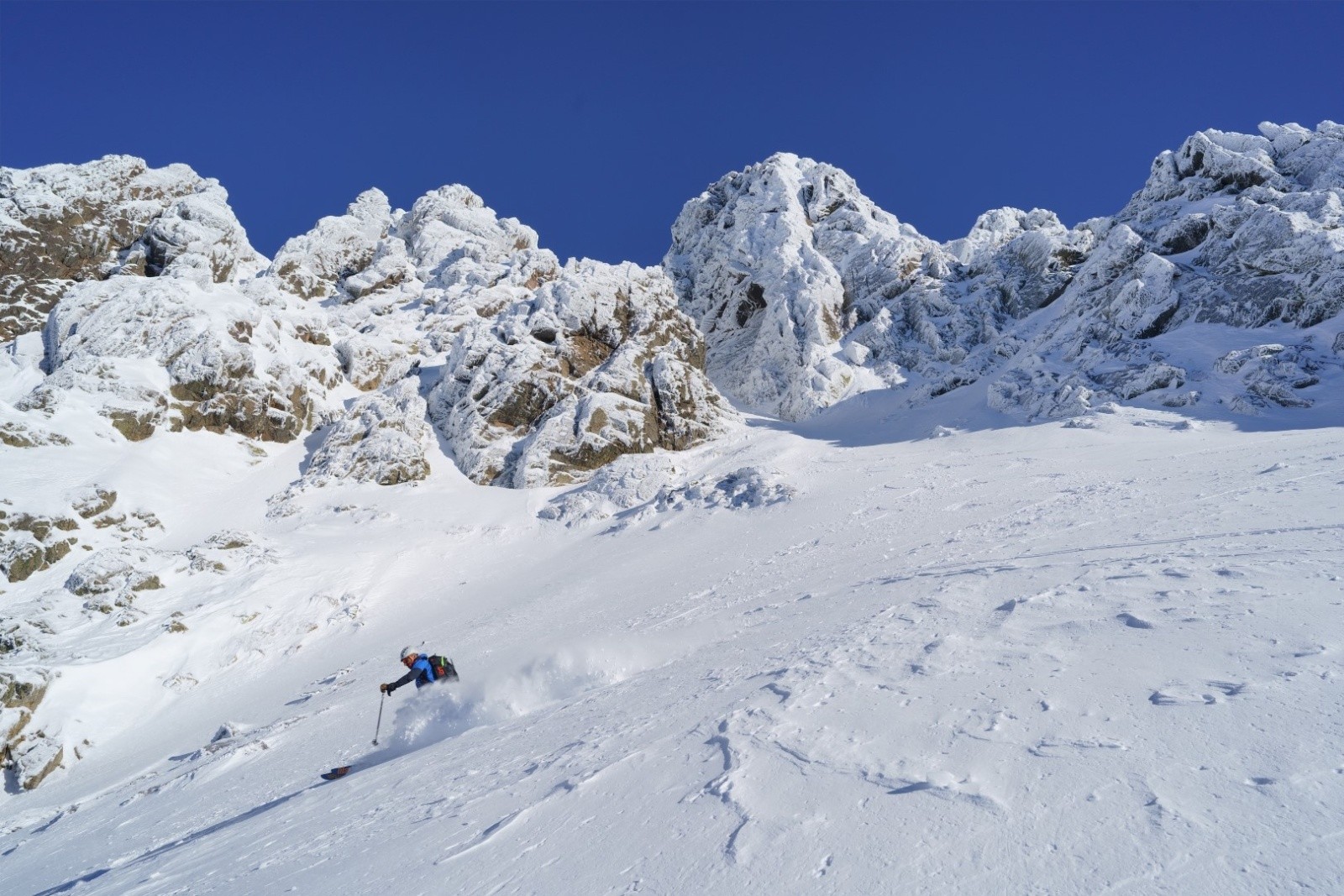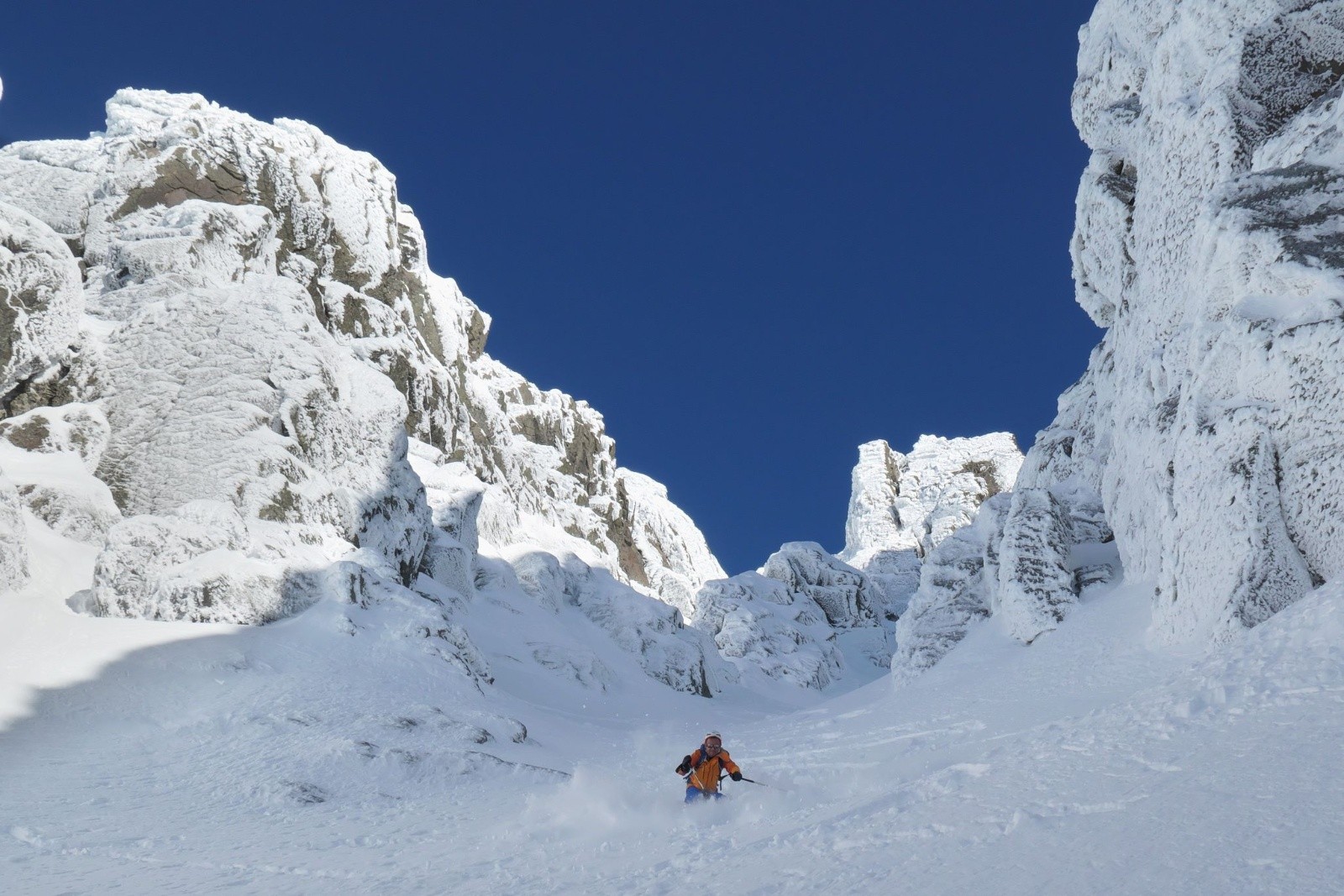 Conditions pour le ski : bonnes dans le couloir avec des filons de poudreuse entre la neige en cours de transformation dans les pentes sud et de la soufflée portante ailleurs. Sous le couloir neige soufflée portante avec un excellent grip, plus bas dans le vallon le vent et le soleil ont fait pas mal de dégâts avec une neige très hétérogène. On ira sans doute dorénavant plutôt en adrets pour profiter de la transfo qui commencera bientôt à être portante le matin.