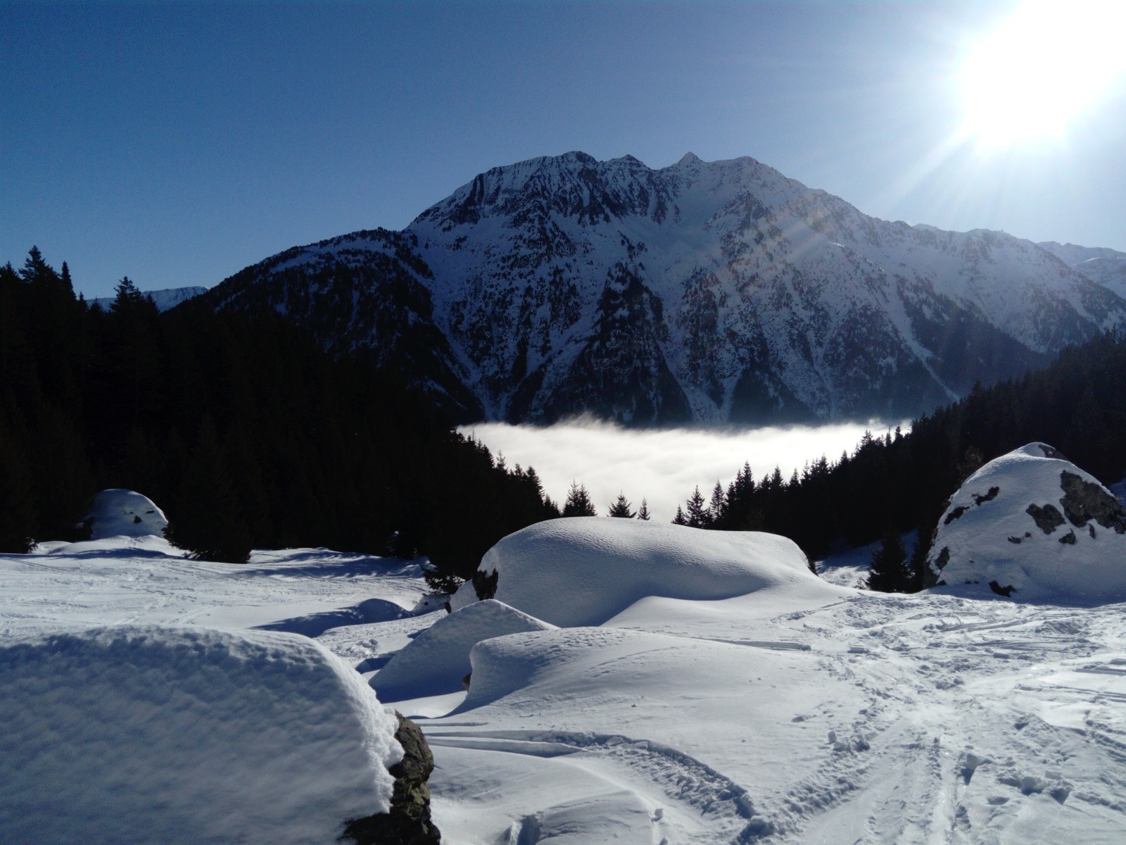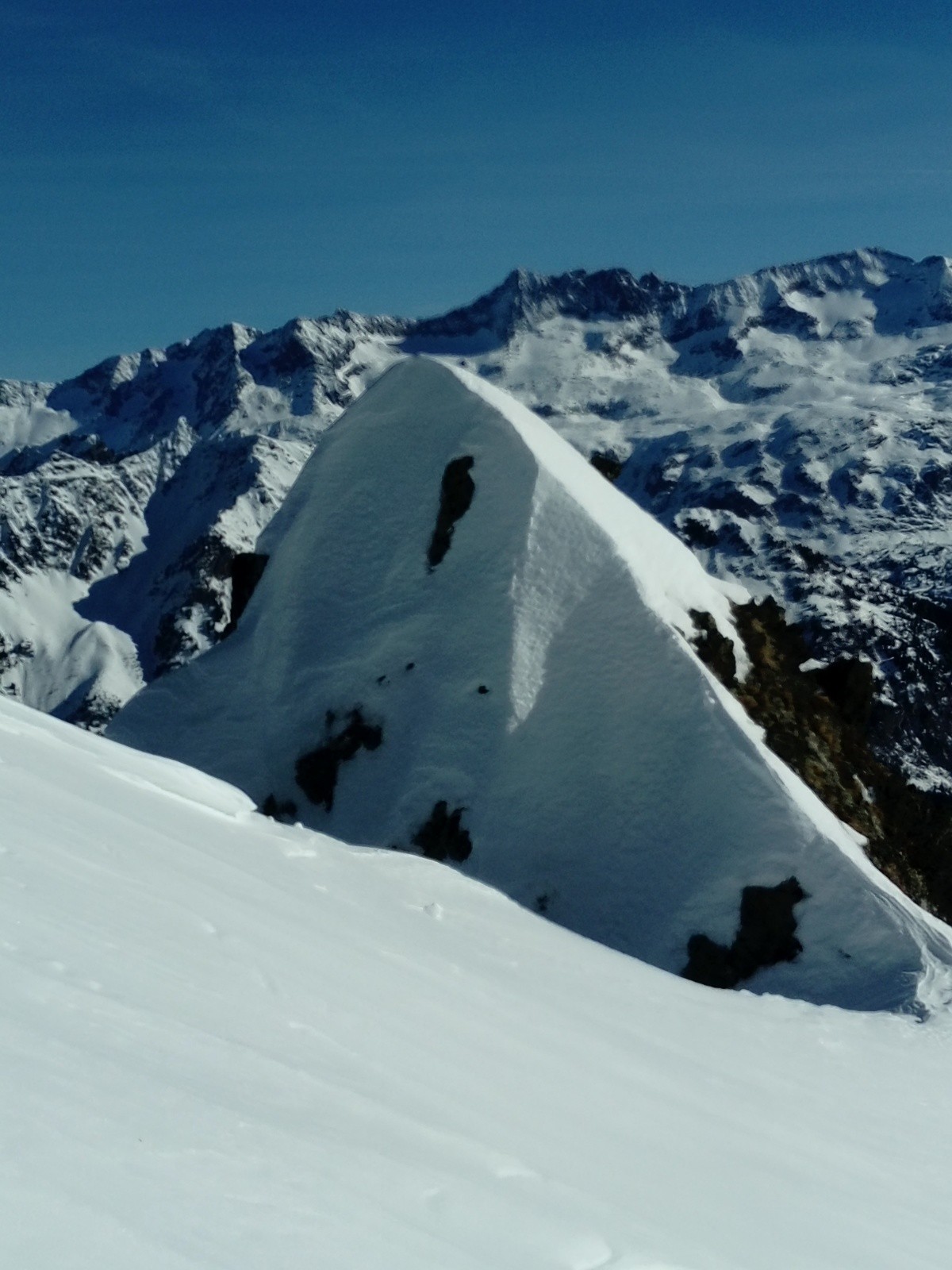 Conditions pour le ski :Neige changeante sur tous les secteurs, un peu de tout, poudreuse, cartonnée en versants ombragés, et même de la transfo en versants ensoleillés (manque encore des cycles gel/dégel tout de même).