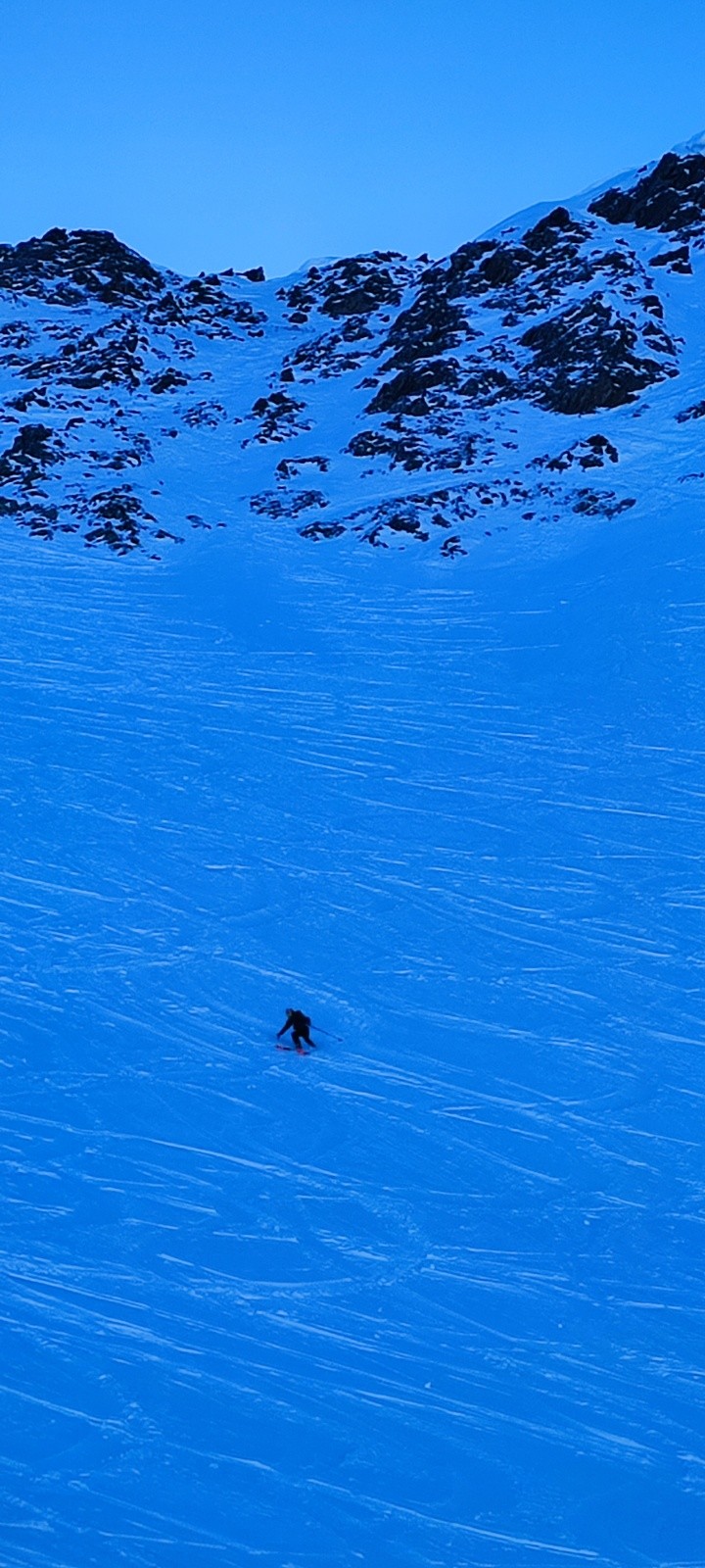 Le début de la combe est un peu carton ,le doute s’installe mais très vite ce sera poudre legere ou legerement