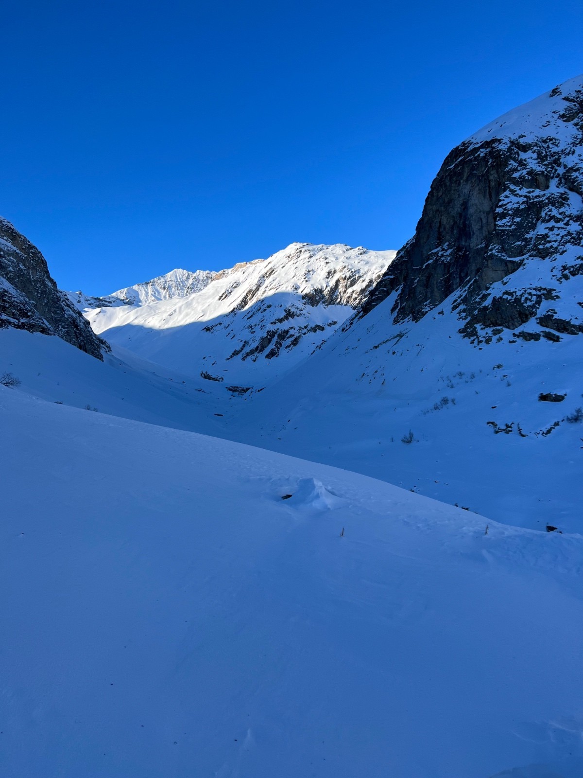 J’ai pris le fond du vallon du Pisset en apercevant le Chalet du Riondet ( je pense qu’on peut rester en haut du vallon rive gauche ), mais l’avancée était plutôt sécuritaire et très sympa.