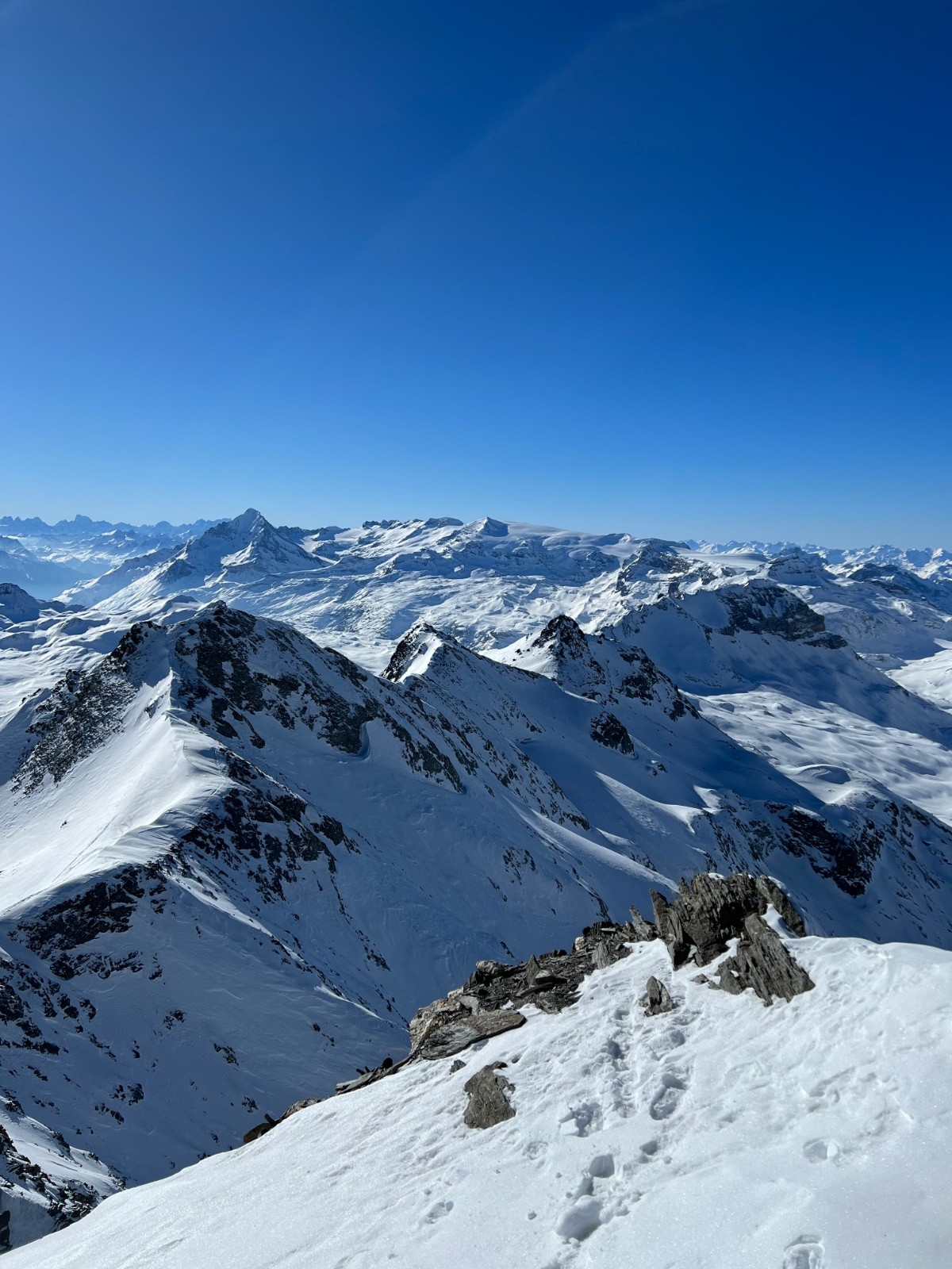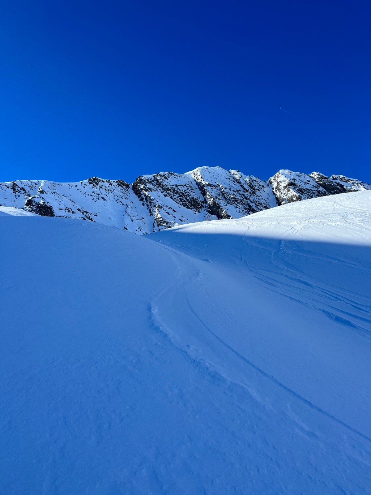 Conditions pour le ski : belle condition de randonnée, avec une belle fraîcheur dans les zones d’ombres, mais bien pour éviter une belle suée.