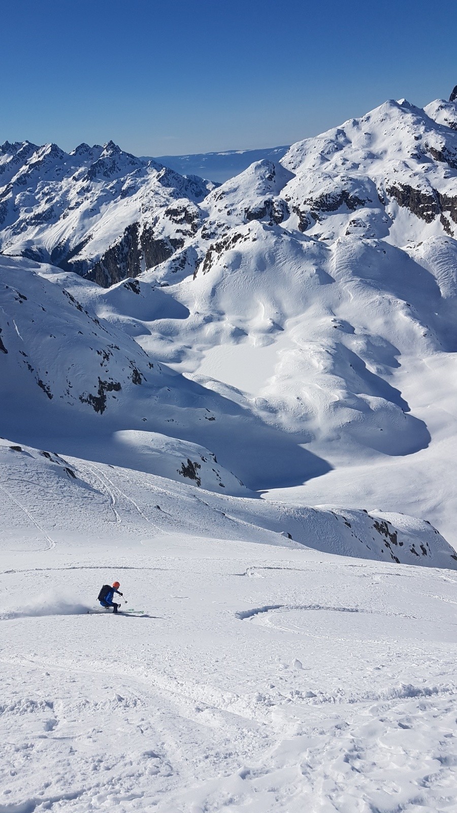 Descente en sud dans une belle moquette. Remontée à la brèche du lieutenant dans une belle trace et dans un cadre bien sauvage.