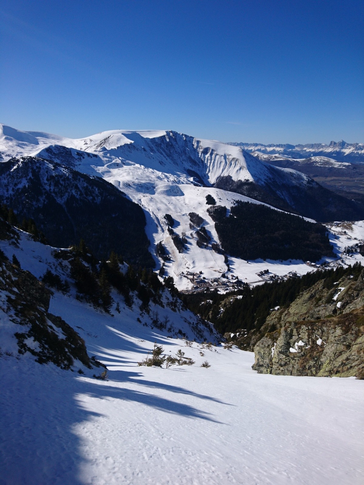 Conditions pour le ski : Excellente moquette là où il y a de la neige, beaucoup moins bien ailleurs, là où il n'y en a pas