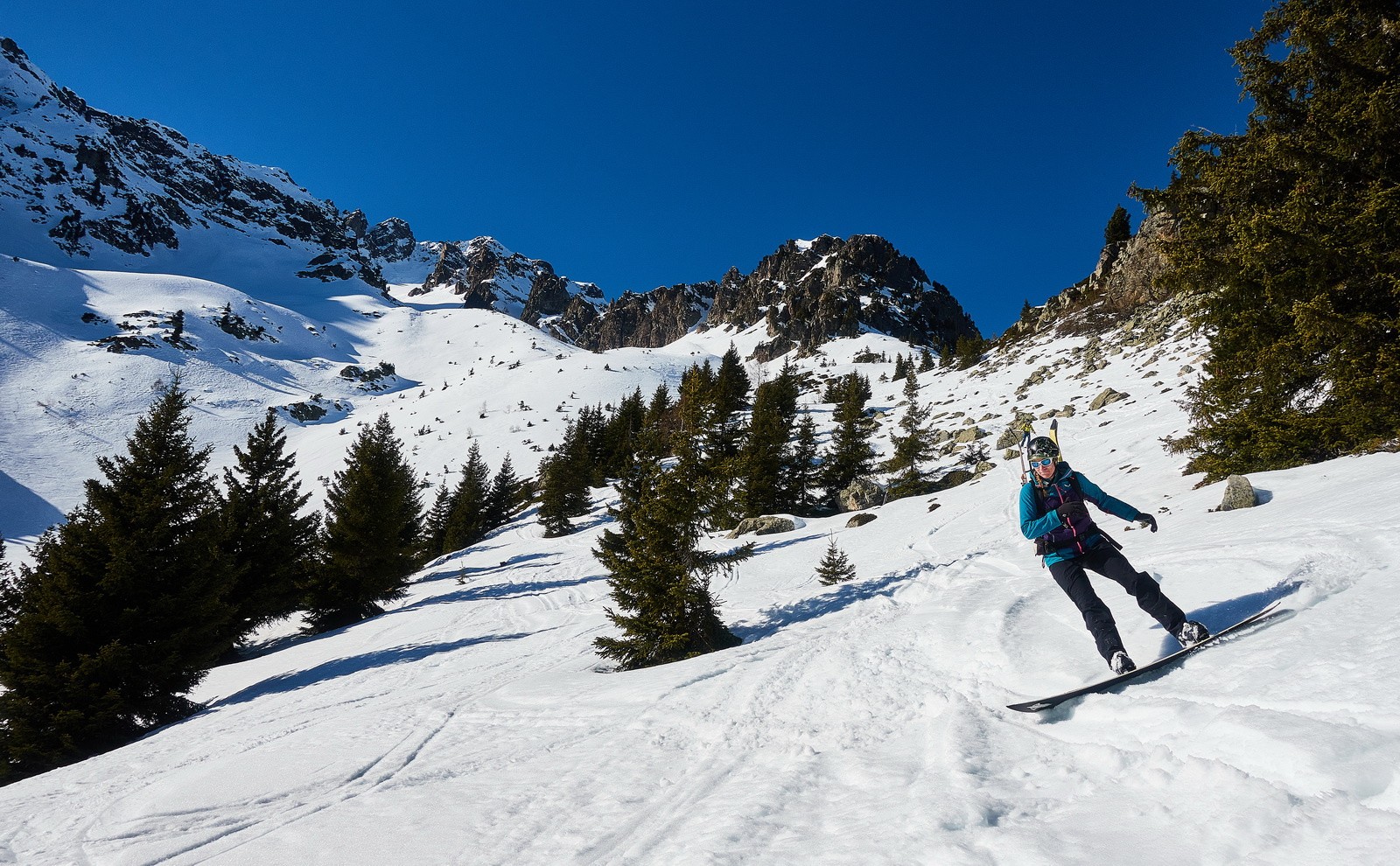 Les Sagnes : très peu de neige en forêt et sur le bas des grandes pentes d’accès. Neige portante transfo en surface, presque moquette.