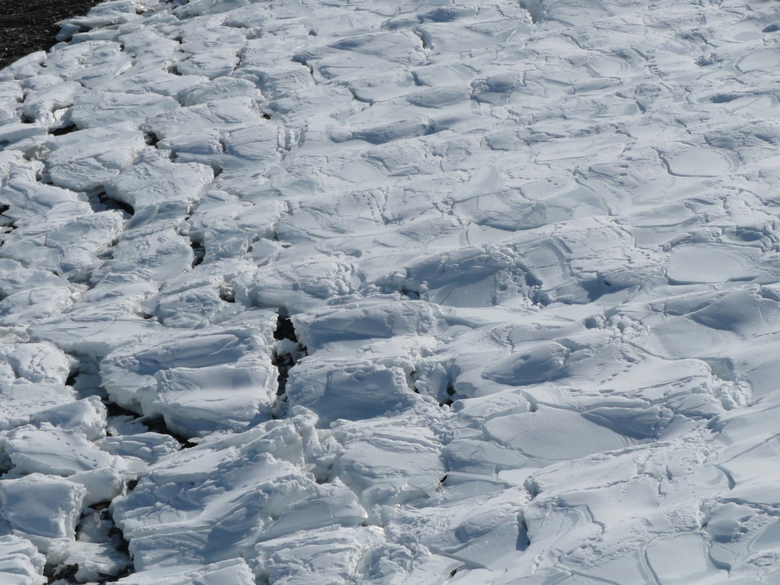 Les traces de descente du matin sur le lac du Vieux Emosson.