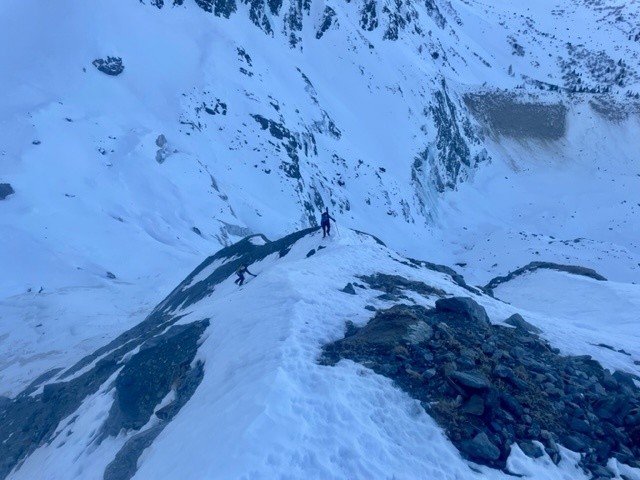 Revenus au Plat de l'Are, les skis reviennent sur les sacs, même si, plus bas, quelques sections peuvent encore se skier.