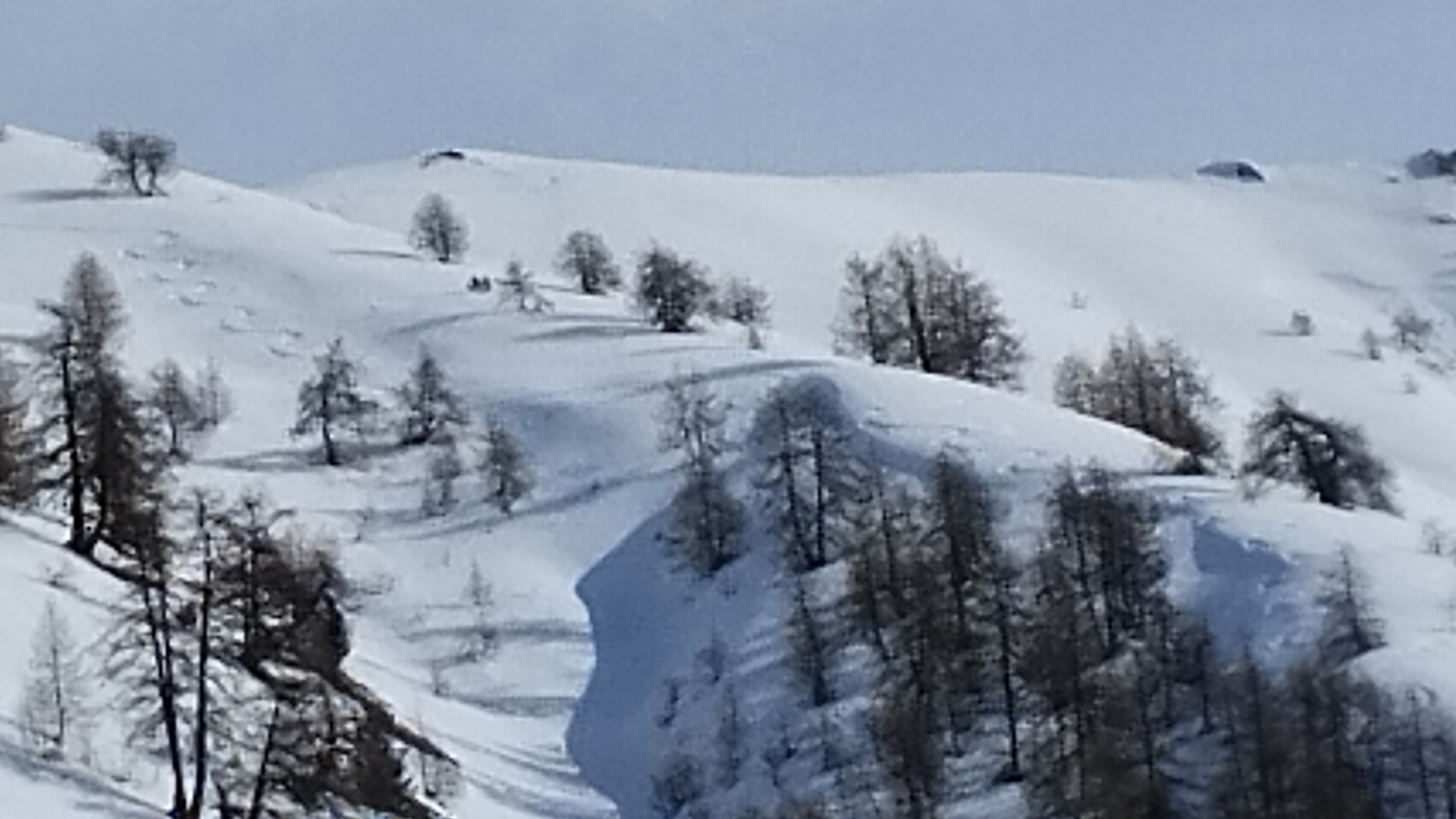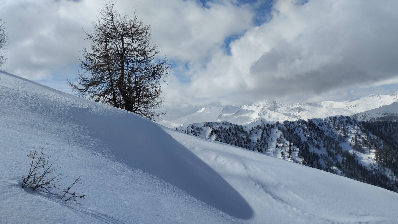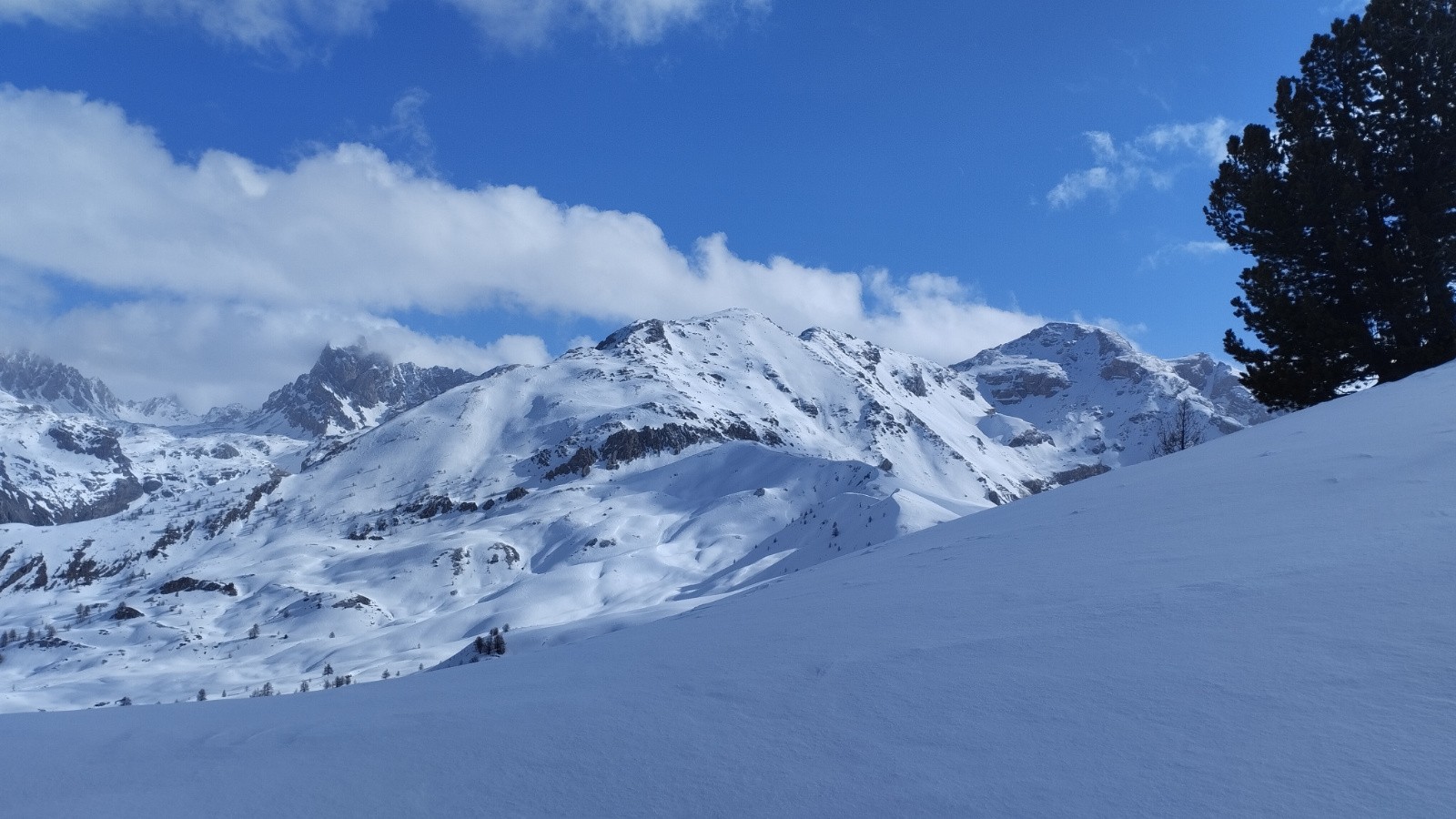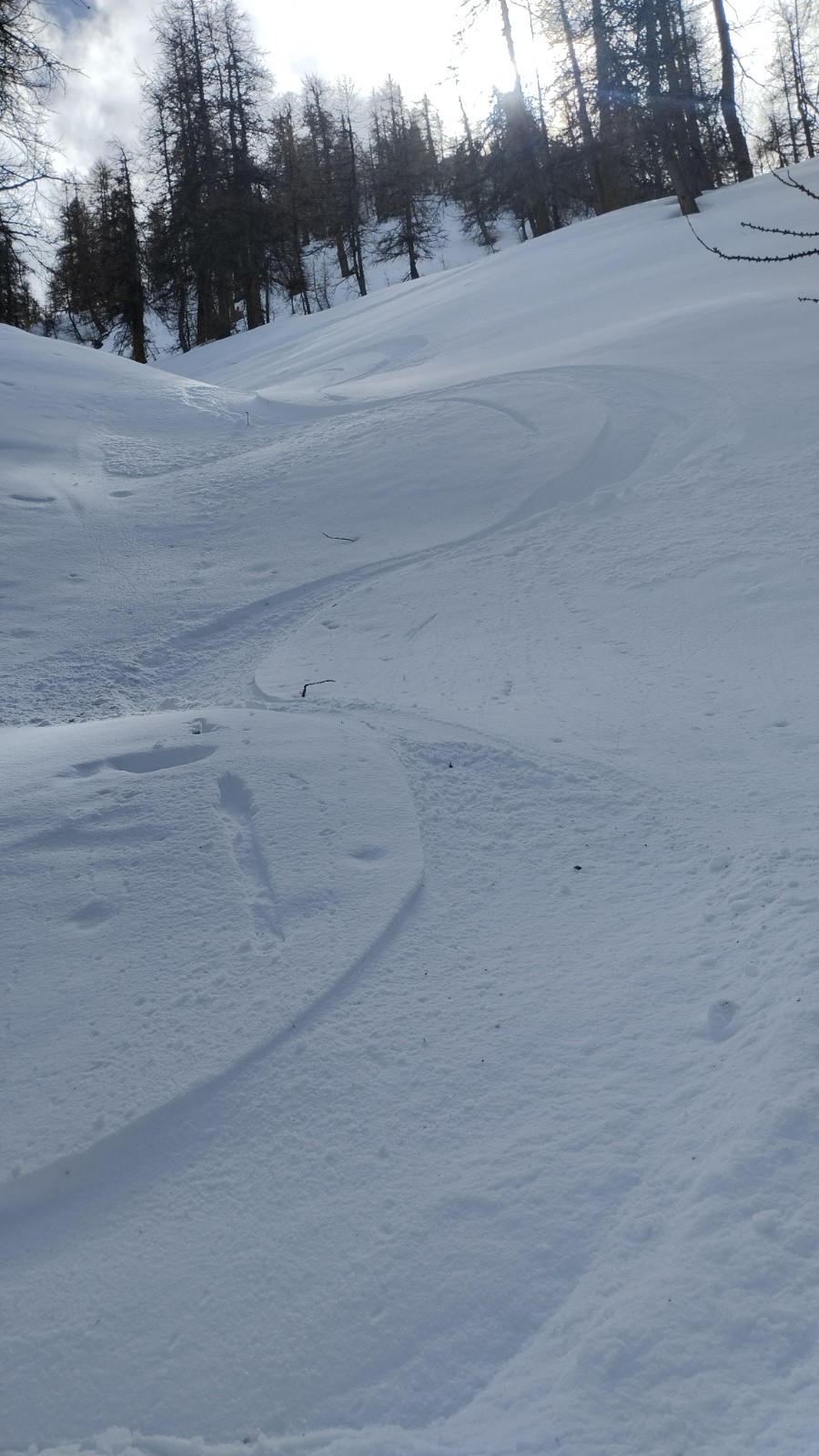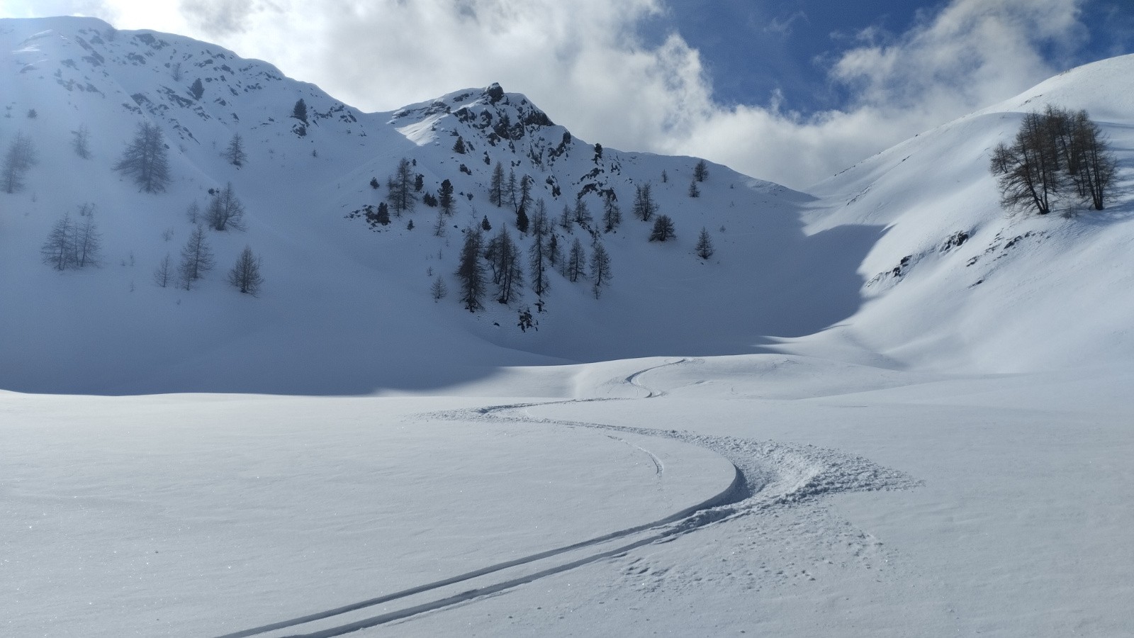 Conditions pour le ski : en choisissant bien on se régale : poudre à l'ombre au dessus de 2000/2100m, un peu de croûte, transfo dessous