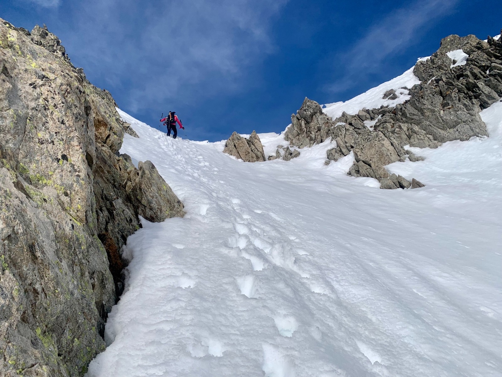 Ravis de chausser des le parking à 1000m, la journée commence bien. Les nuages hauts se dissipent rapidement pour faire place au soleil. L'arrivée à la combe de La Valette est spectaculaire, avec le pic du frêne qui trône. On atteind facilement le col du golachon, avec une redescente plein soleil en basculant au sud. La pause repas s'impose, on profite du soleil, de la solitude, on n'a pas croisé une âme. On prend notre temps pour remonter le pas du frêne, en regardant l'horaire. On l'atteindra à 15h, estimant que c'est suffisant pour finir notre boucle. Le spectacle s'enchaîne à la descente du pas du frêne, où l'on aperçoit au loin une magnifique mer de nuage. On peut continuer sereinement au soleil la remontée à la brèche du frêne. Notre attention se porte sur le raidillon glacé, on aperçoit aussi en basculant dans ce versant la mer de nuage, mais on y prête pas d'importance pour l'instant. Ca n'est que plus tard que La descente dans le brouillard attire notre attention, on est vigilant, on sort le téléphone toutes les 5 minutes pour vérifier la trace et ne pas louper la traversée vers le col de la pierre. En descendant, le brouillard est de plus en plus épais, il finit par nous alerter quand on ne voit plus rien, plus deux mètres devant nous, plus de trace au sol, rien, on ne voit rien. Je sors le téléphone, on est juste en dessous du col de la pierre. On a perdu beaucoup de temps avec ce brouillard, il est 17h. Il neige. Il faut alors remonter, trouver le passage. On remonte 20m, on ne voit rien. Il fait froid, on a 2000 de d+ dans les pattes, mais dans ces moments la, il y'a un regain d'énergie, il faut s'activer. Peut être que le col ou on était finalement plus bas était le bon? On y retourne. Le gps nous indique encore quon est trop bas. Je n'ai plus que 10 pour cent de batterie. Cédric en a encore, on decide alors de prévenir les secours pour leur expliquer la situation. Ils nous demandent de chercher, de faire le point dans 15 minutes. On remonte, on cherche, on finit par se retrouver sur une arrête, vide de chaque côté. La trace indique qu'on est tout prêt... mais on ne voit toujours rien. Il est 17h45, je n'ai plus de batterie. Il est temps de rappeler les secours. Ils ont pris en compte notre situation, mais ils ne peuvent pas intervenir avec le brouillard. Le stress monte de plus en plus, que faut il faire? Cédric decide de persévérer, il faut trouver le col, sinon, secours ou pas, on ne nous trouvera pas. La nuit tombe. On entame une traversée un peu à l'aveugle, ski sur le sac, neige dure, piolet. Je veux mettre les skis pour aller plus vite, mais c'est clairement l'option dangereuse, Cédric me raisonne. Après une centaine de mètres: soulagement, le col, enfin. Il fait presque nuit. Cédric n'a presque plus de batterie. On rappel les secours, 112. La régulation du CODIS 73 nous met en contact avec le référent montagne. Côté Savoie aucun hélicoptère ne pourra décoller.