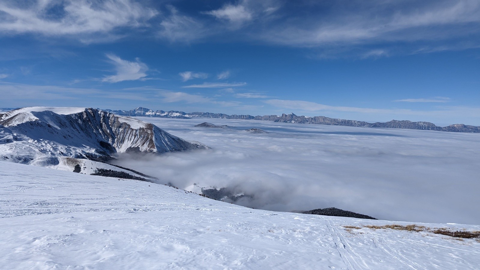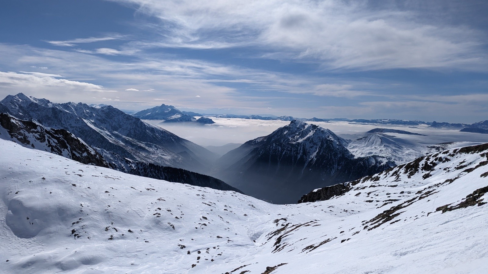 Conditions pour le ski : Peu de neige sur le bas, jusqu'à la sortie de la forêt. neige traffollée et dure avec zastrugis sur le haut avant le sommet du taillefer (pas de transformation en haut). La crête du brouffier est bien pelé par endroit, mais ça passe encore. Le pas de la mine doit encore passer à skis mais faut faire gaffe (Je suis redescendu avec les crampons).