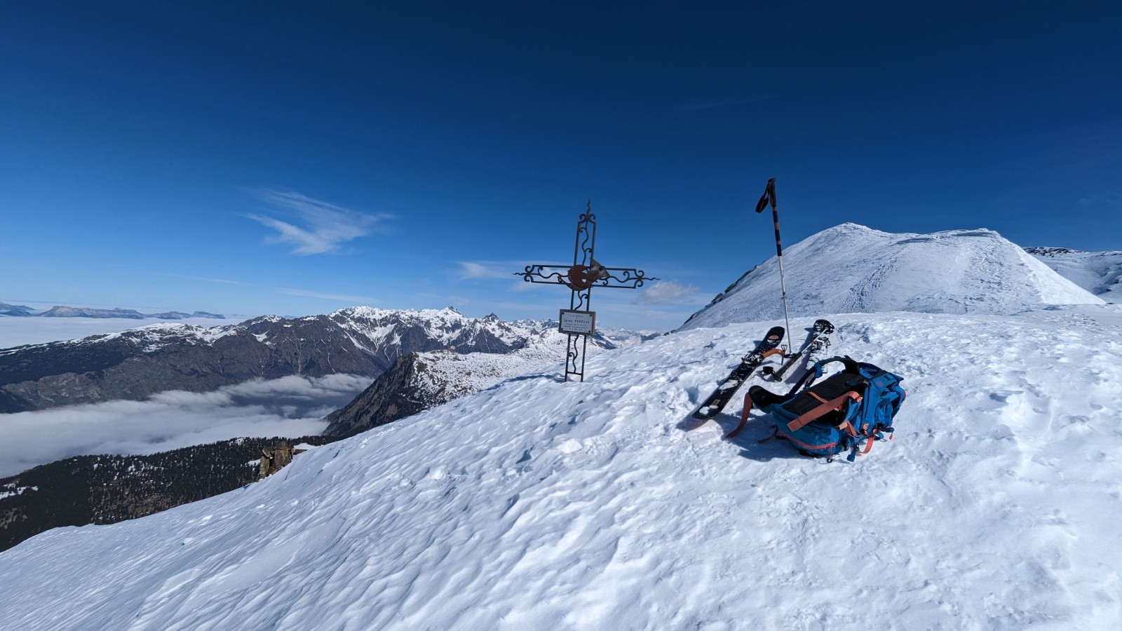 Itinéraire suivi : Montée par brouffier puis face ouest direct en crampons piolet pour rejoindre la croix du sergent pinelli (cf. photos surlignage en jaune). Arête du sergent pinelli / col du grand vent / Taillefer. Descente par le pas de la mine.