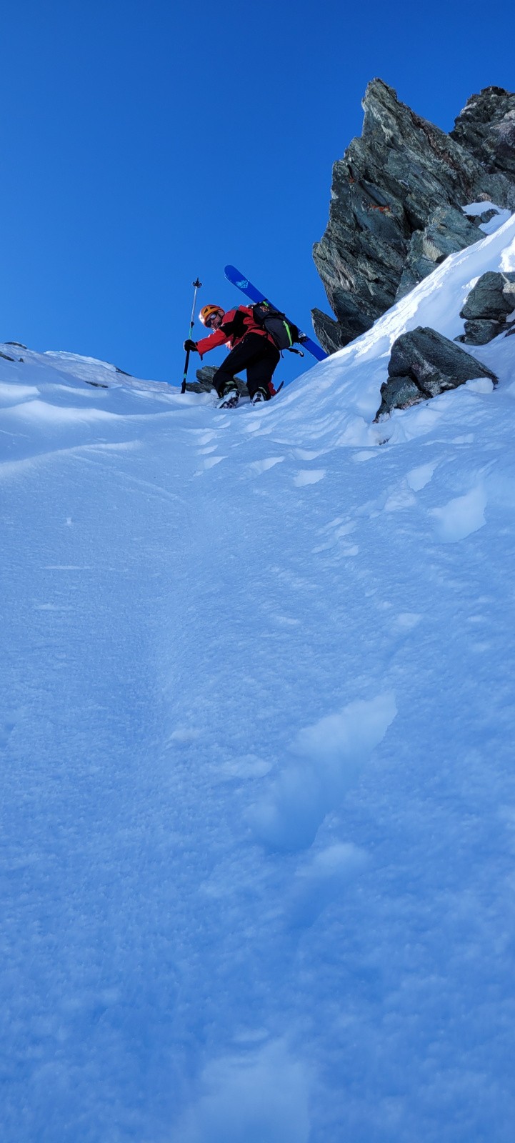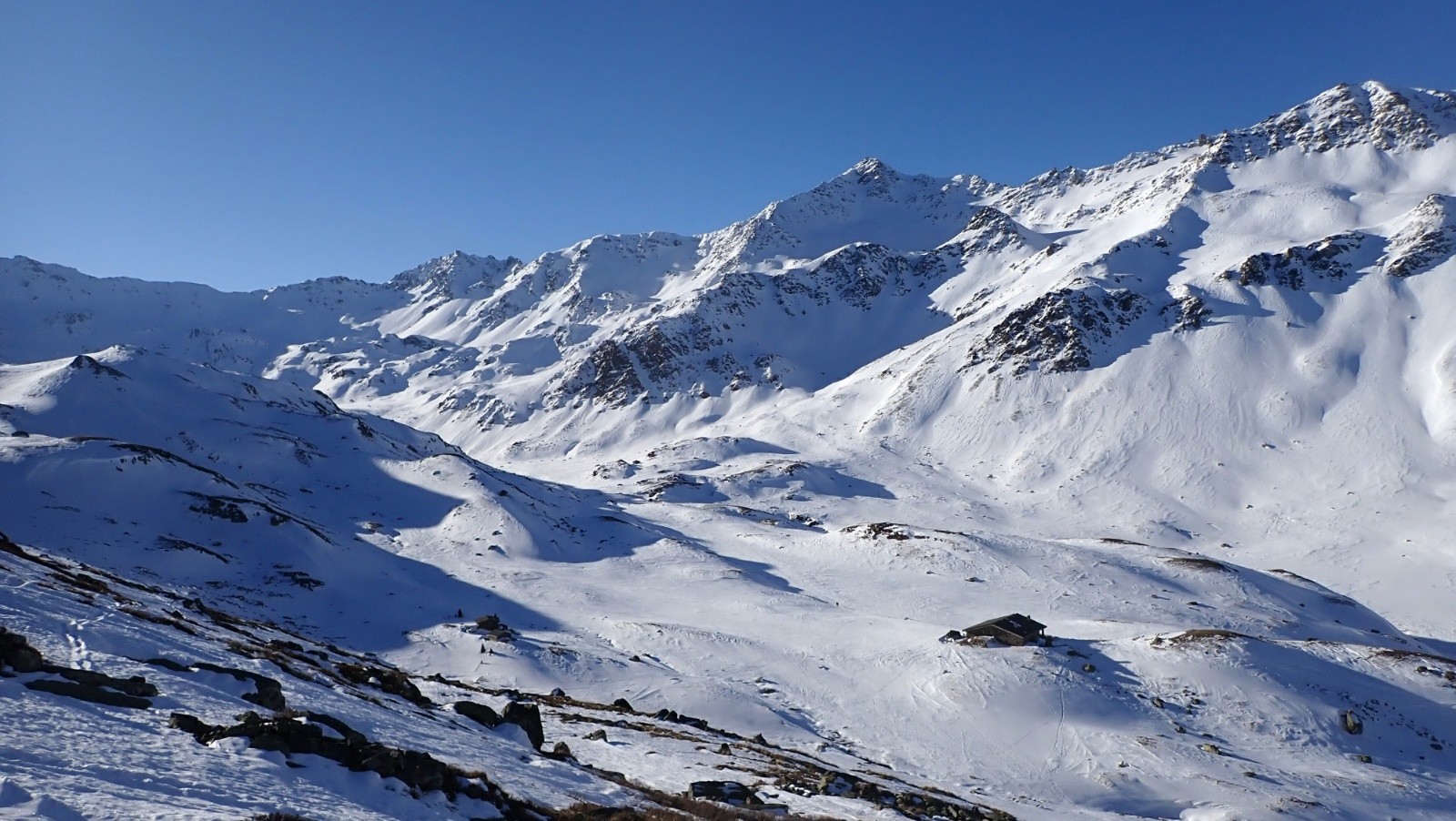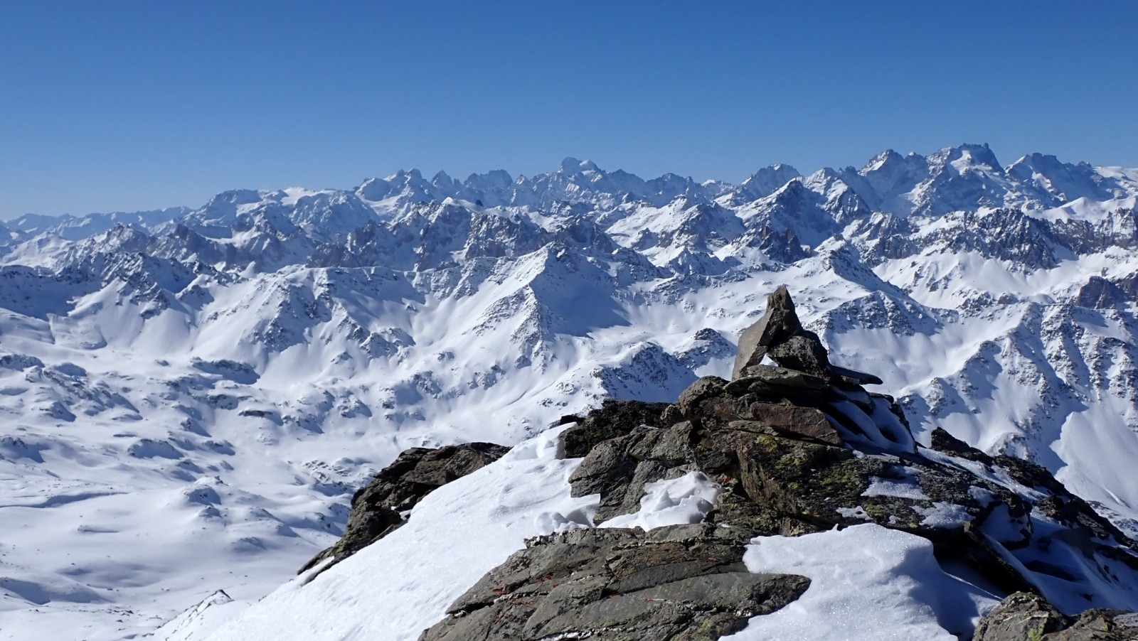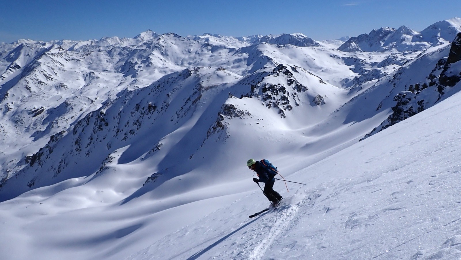 Conditions pour le ski : un peu de bruyère sur la trace de montée deux petits passages courts où il n'est pas vraiment nécessaire de déchausser. neige dure écaillée en face sud. Sur le glacier, 20 à 30 cm de poudre rapportée par le vent, sur les contrepentes NO, 15 cm de poudre le plus souvent en choisissant les itinéraires. Le vallon des Marches en bonne neige dure. Retour par la piste en bonne condition à la voiture.