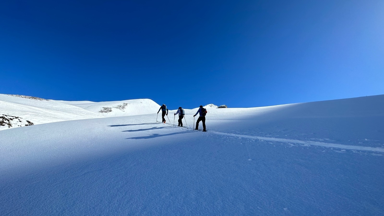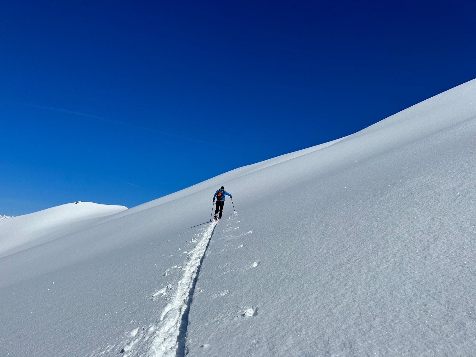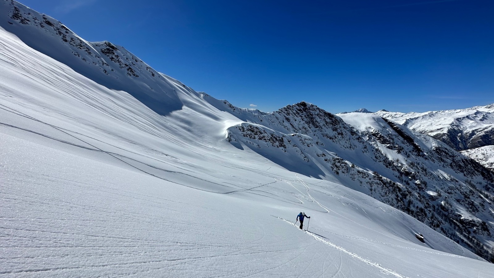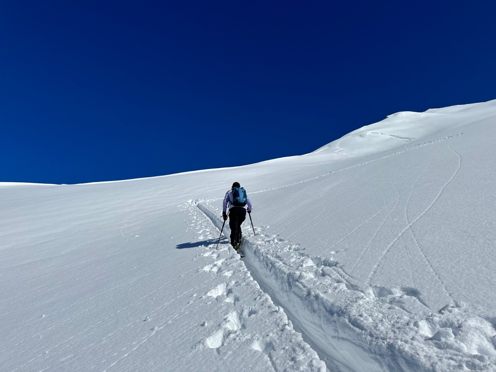 Activité avalancheuse : rien vu. Un vieille plaque au départ, probablement partie pendant la chute.