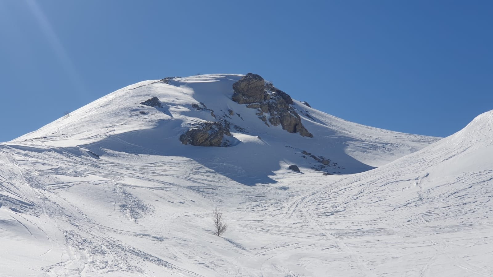 Madame ayant un petit pb au genou, exit la rando prévue aux Lacs du Marinet. Pas voulu faire 70 Km de route AR. Et donc envie de faire un peu de dénivelé ... pour mon âge...Départ du front de neige en direction de la Grande Séolane, peu de monde sur les skis, juste un autre skieur rando. Montée par la piste jusqu'au départ du tire-fesse de Gimette. De la partir à gauche en direction de la Grande Séolane. Pas pu faire le même itinéraire évident qu'il y a deux ans à cause du manque de neige, dommage! !!! Vu imprenable sur la maitresse des lieux: Mme Grande Séolane. Dommage qu'au sommet, se trouve l'arrivée du Ts du Lac et de la liaison avec La Foux.