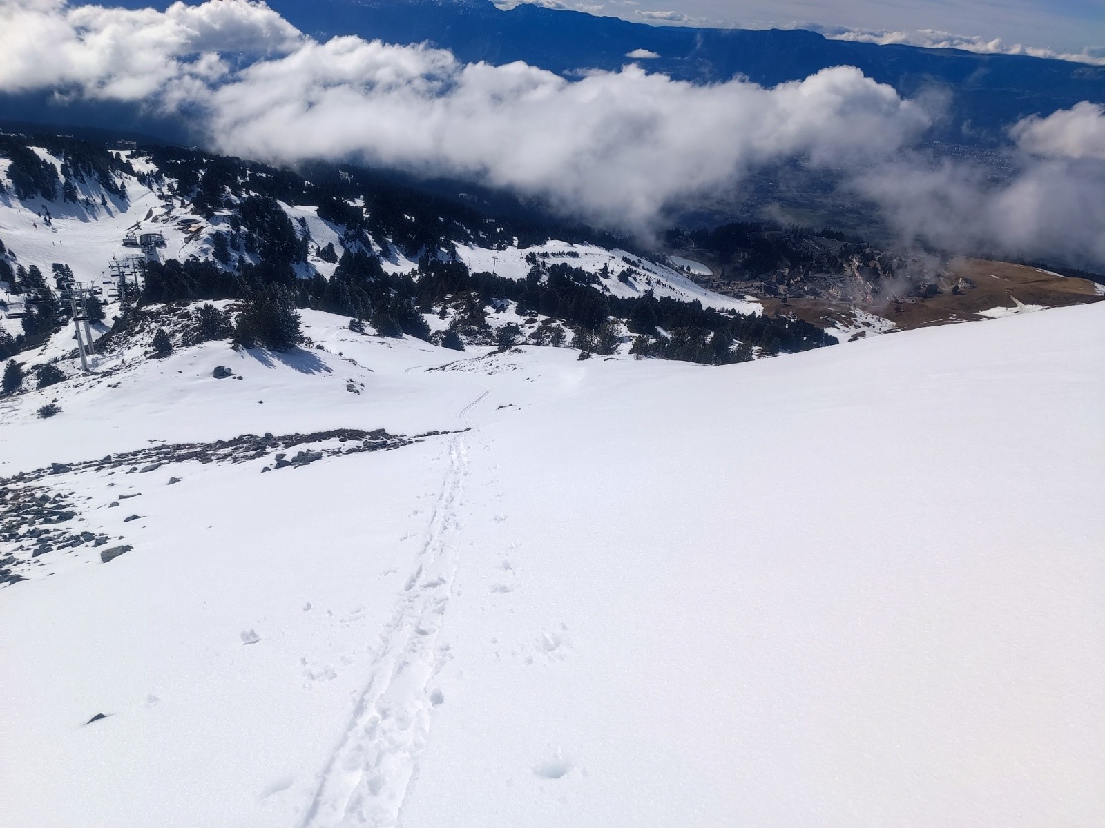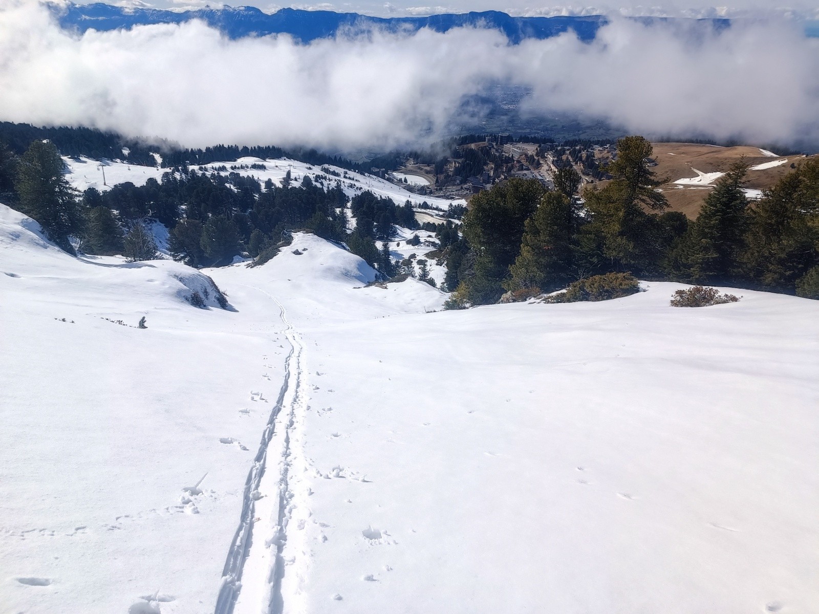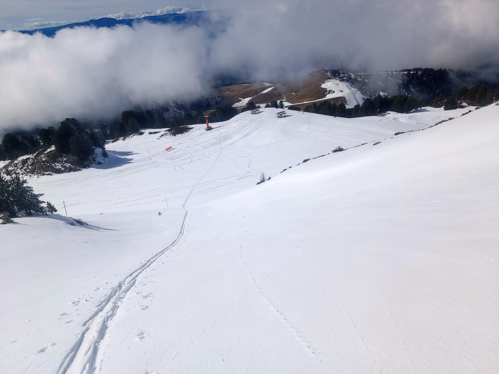 Les pistes fermées et le télésiège des amoureux fermé aident à trouver aussi des portions vierges pour la montée et hors skieur, parfait pour moi 🤣