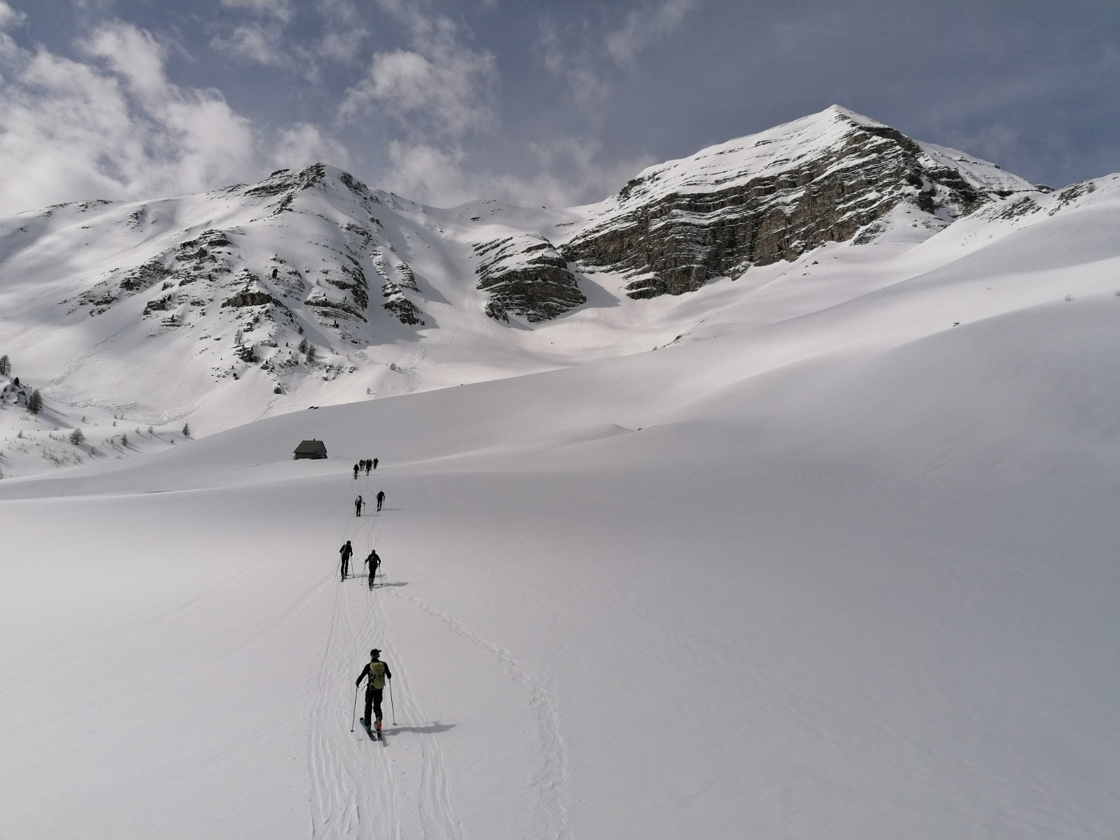 Conditions pour le ski : neige lourde à la descente qui avait commencé à bien transformer, épaisseur de neige très faible sur les dômes et crêtes.