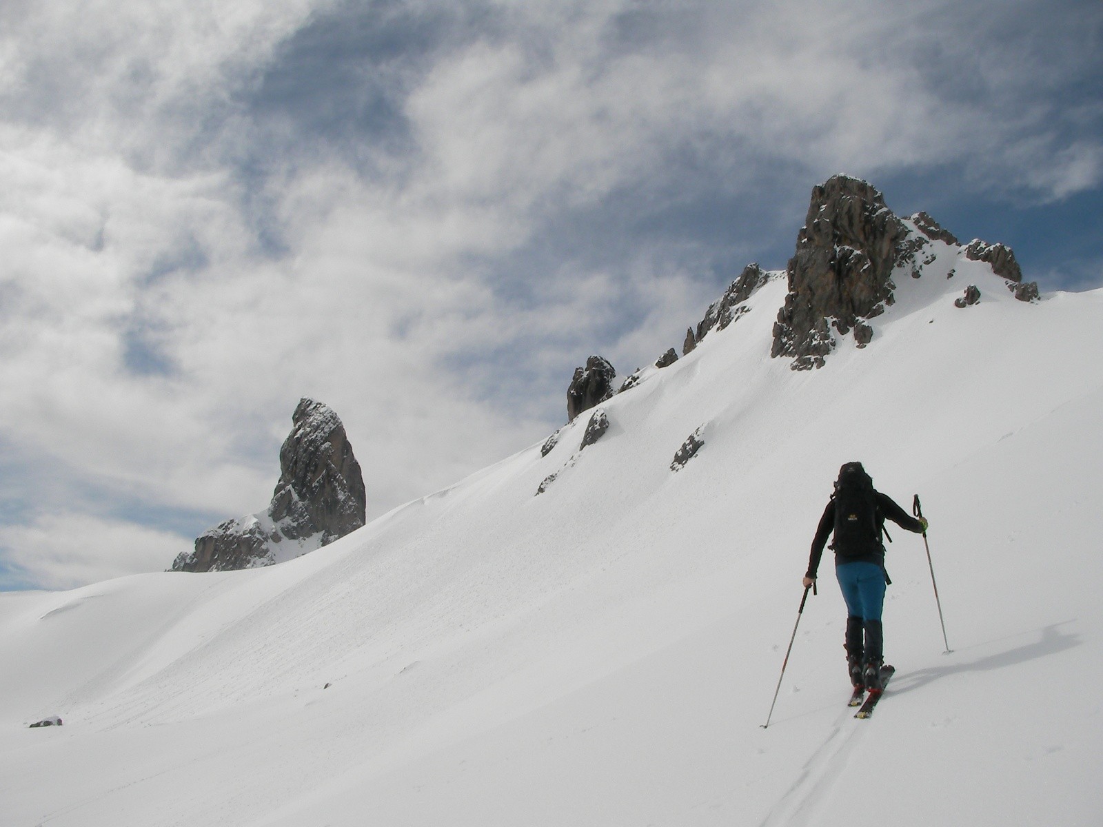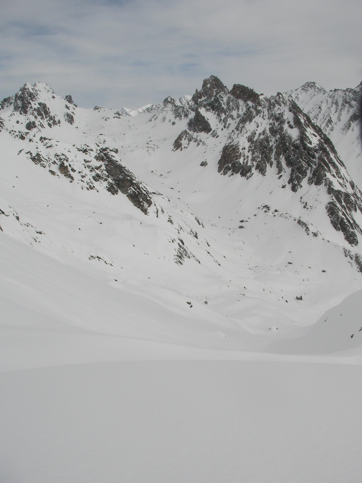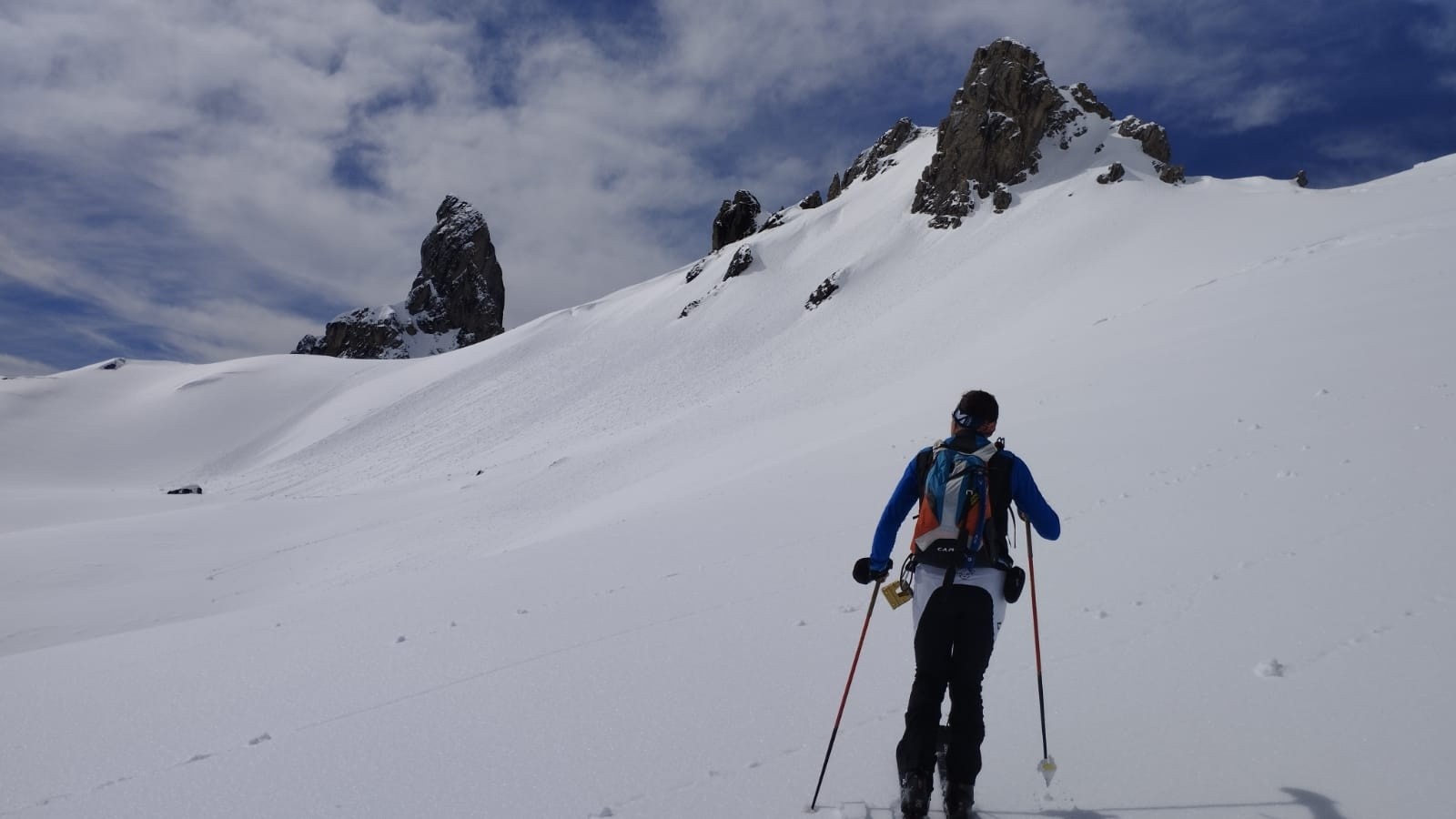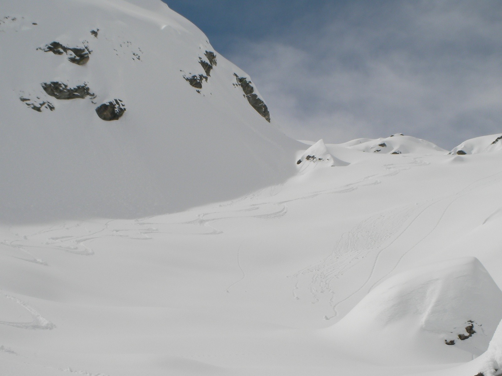 Le passage le plus délicat de la sortie (Col du coin) l'a été. Nous nous sommes écartés. Nous avons échangé de la façon d'attaquer la pente et des sensations lors du traçage.