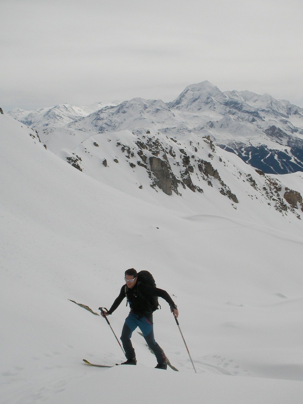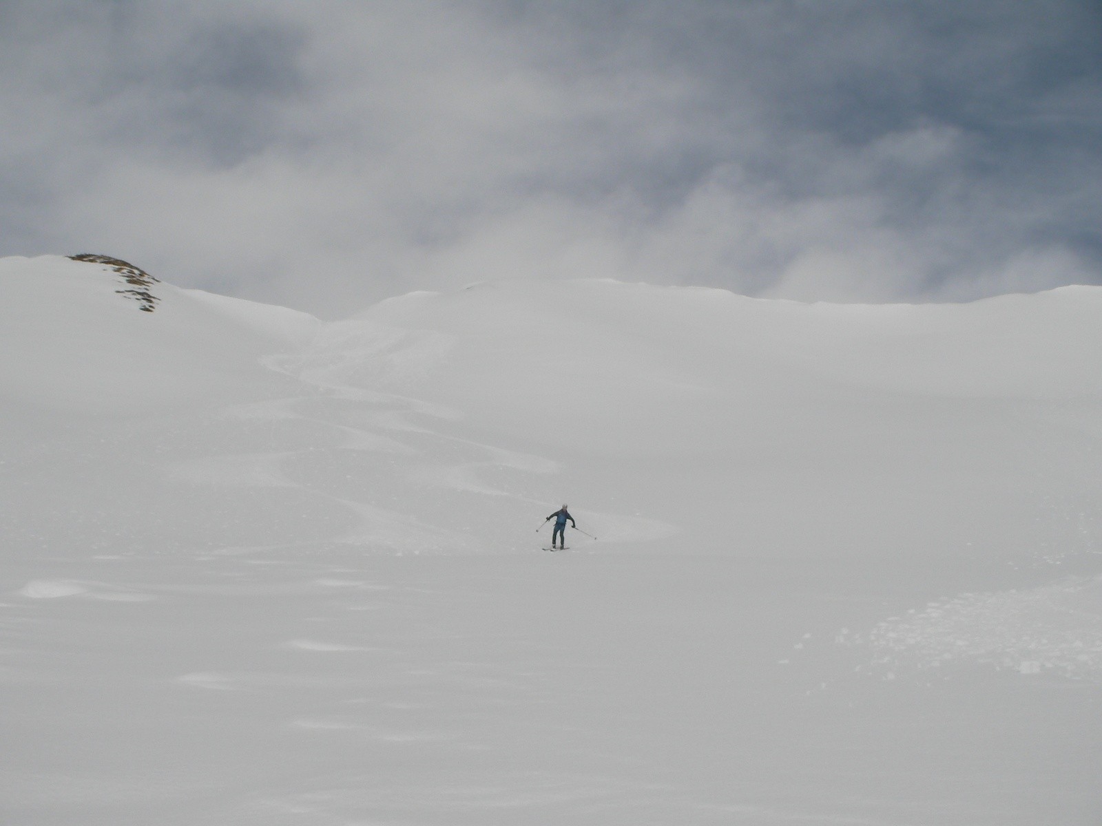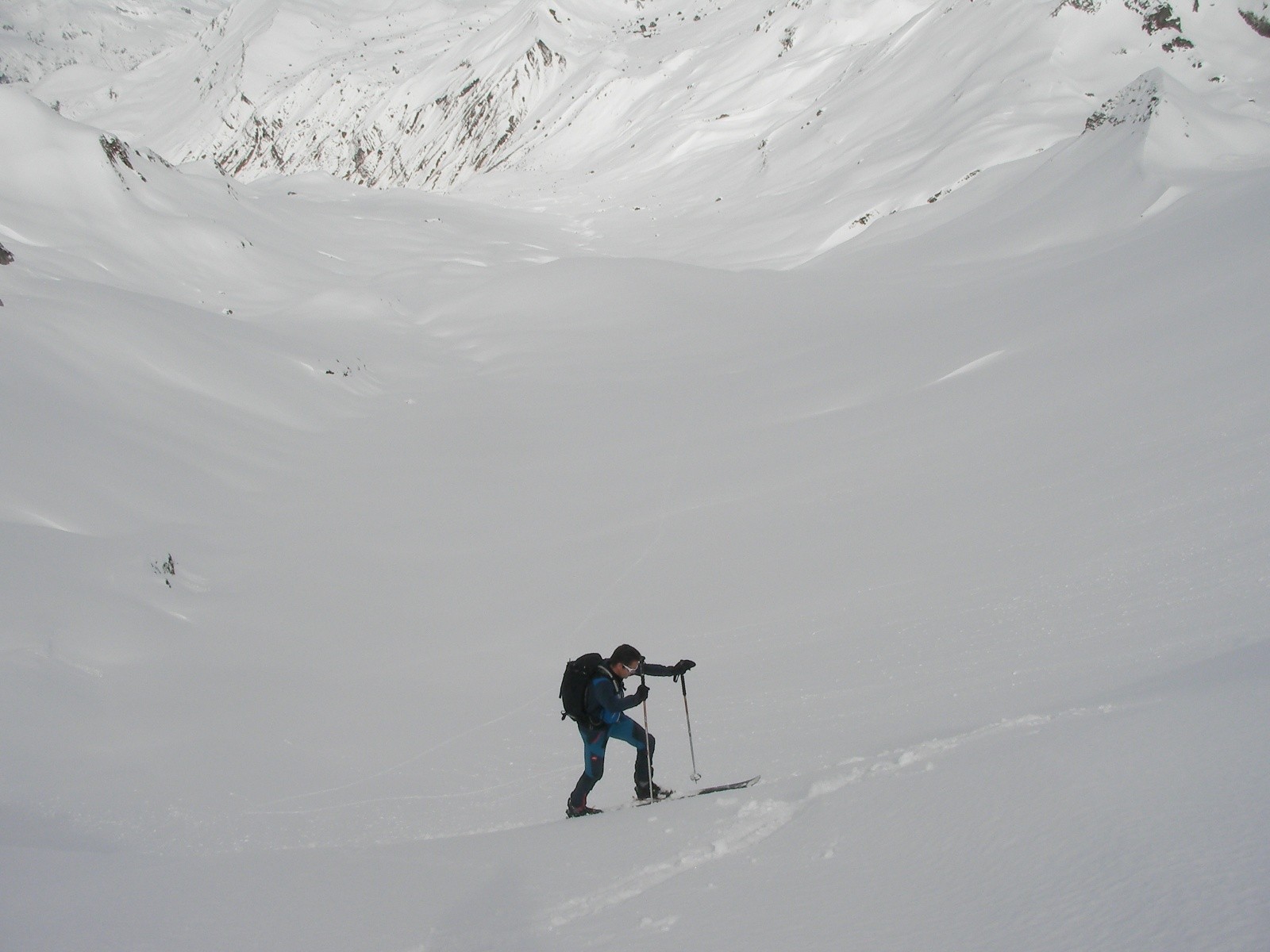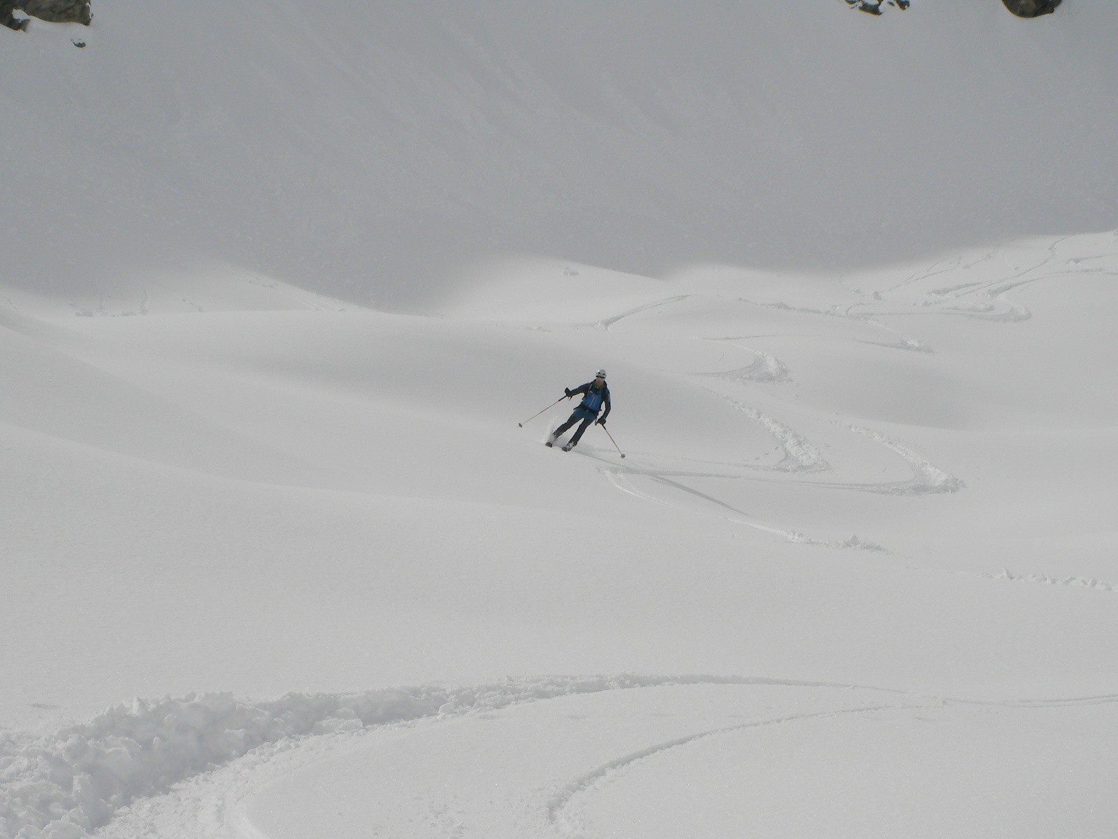 - Descente col du Coin en neige poudreuse froide à dense, puis transfo.
