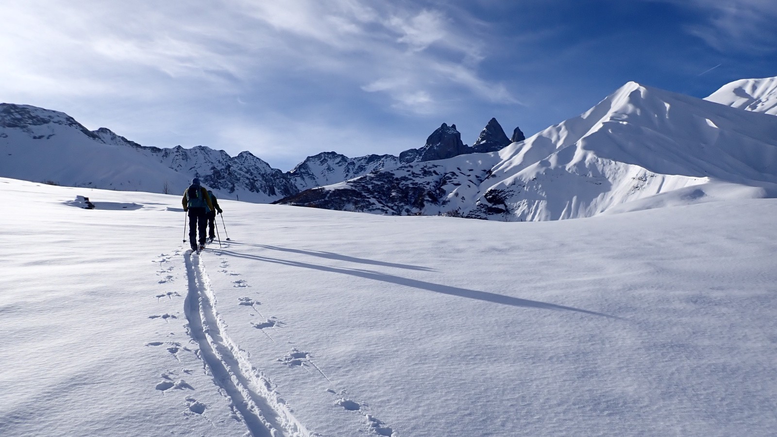 Conditions pour le ski : à partir de Pré Valloire, traçage dans 20 cm de poudre dense sur fond souple