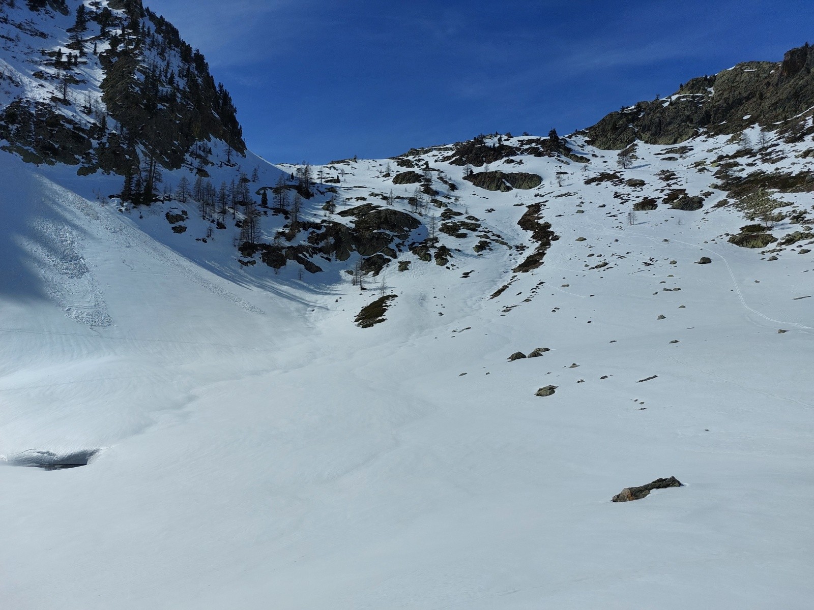 Super moquette jusqu'au lac >, idem jusqu'au lac <, un peu plus lourde ensuite jusqu'au vallon dei Morti.