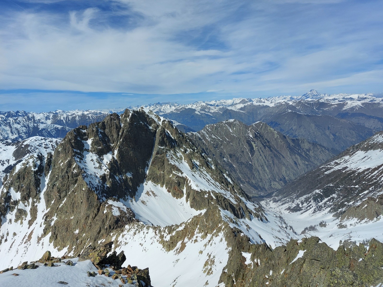 Montée sans souci à la Lombarde puis au Col dei Morti. Descente du premier ressaut raide très très dure avec vitre sur le haut, je manque de m'en prendre une bonne. En bas je rattrape Alain et son compagnon qui sont descendus en crampons.