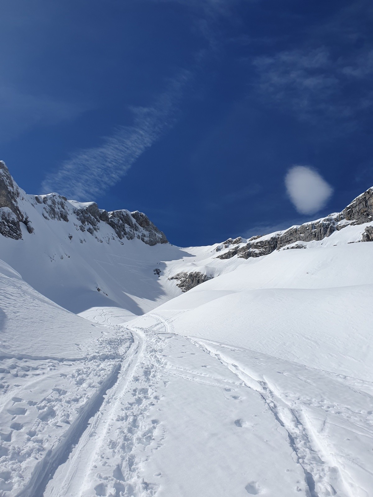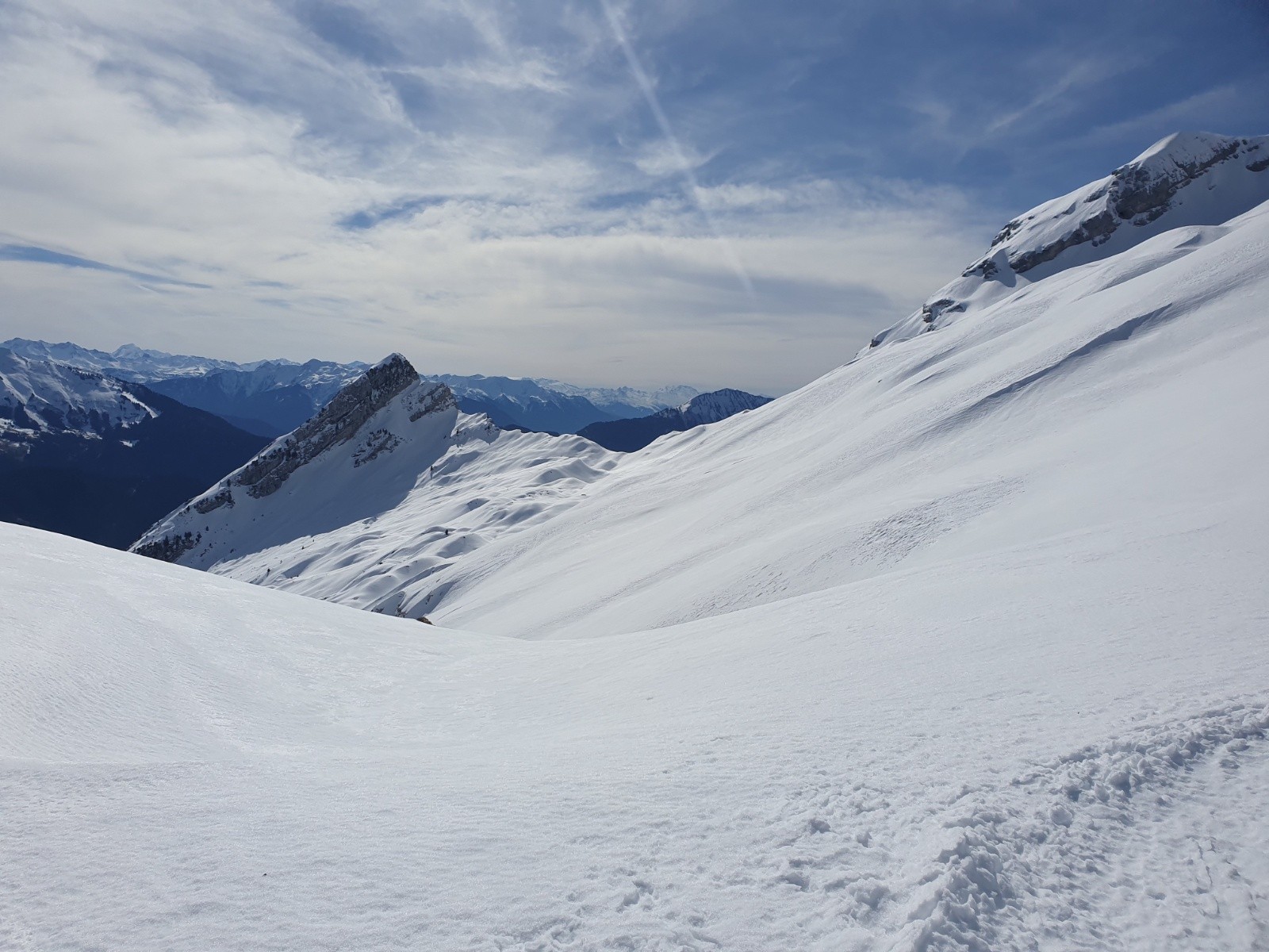 Conditions pour le ski : Neige encore fraîche dans la combe mais bien compacte ..sinon descente à midi neige très lourde mais mieux que de la croûte ou de la glace 😉