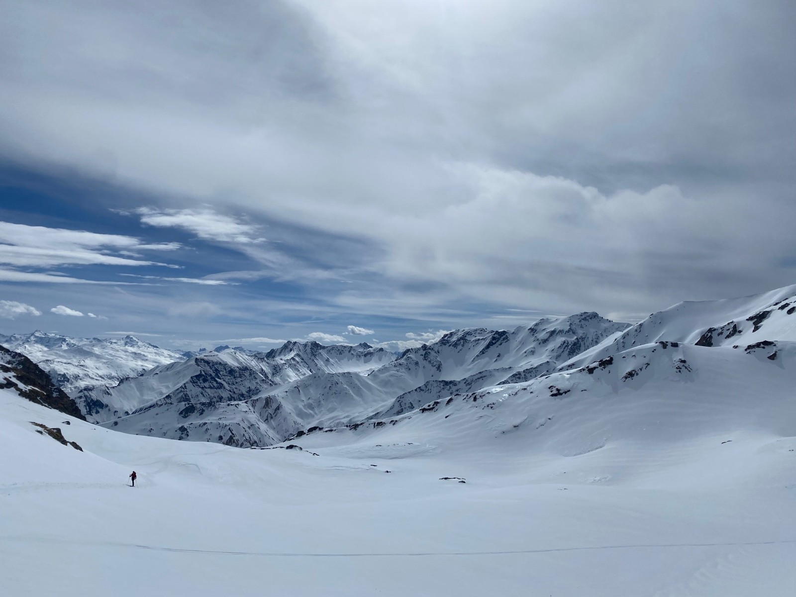 Descente bien agréable et neige de printemps jusqu’à environ 2000m vers le chalet de la Platiere.