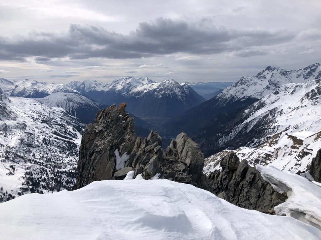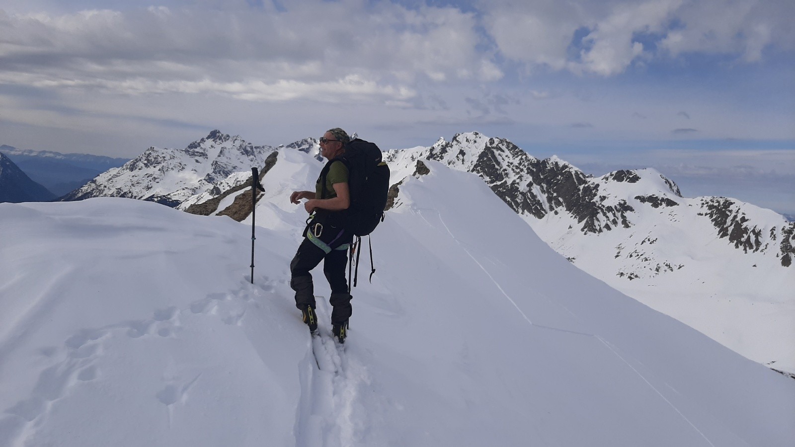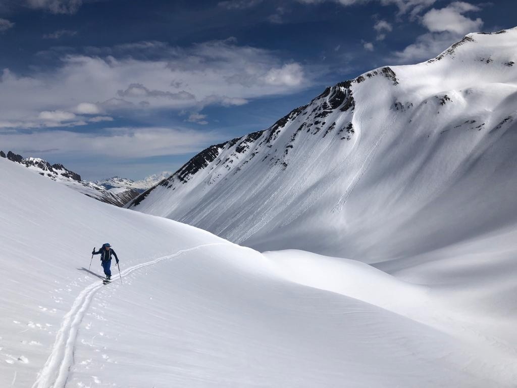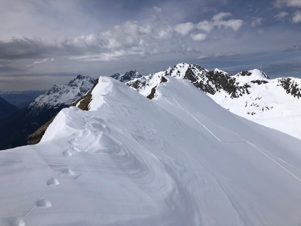 Avec le peu d'enneigement sur la montée vers le col du sabot, les arrêtes de Vaujany nous ont semblées bien adaptées comme objectif de ski de rando en attendant la montée du vent pour une séance de ski kite. Une bonne petite poudreuse tassée en première descente sous côte belle nous comblera avant de remonter sur les arrêtes de Vaujany. On croisera à plusieurs reprises le groupe sympathiques des CAFistes de Lyon dans nos remontées descentes successives à ski. Méfiance mais bonne surprise pour la descente NW sous les arrêtes avant de retourner sous le col du sabot pour entamer une séance de kite ski malgré le peu de vent. Belle démonstration de Jean et ses copains à la manipulation des voiles qui remonteront au col du sabot poussés par le peu de vent. Pour moi ce sera partie remise, pétole et initiation kite ca ne va pas ensemble.