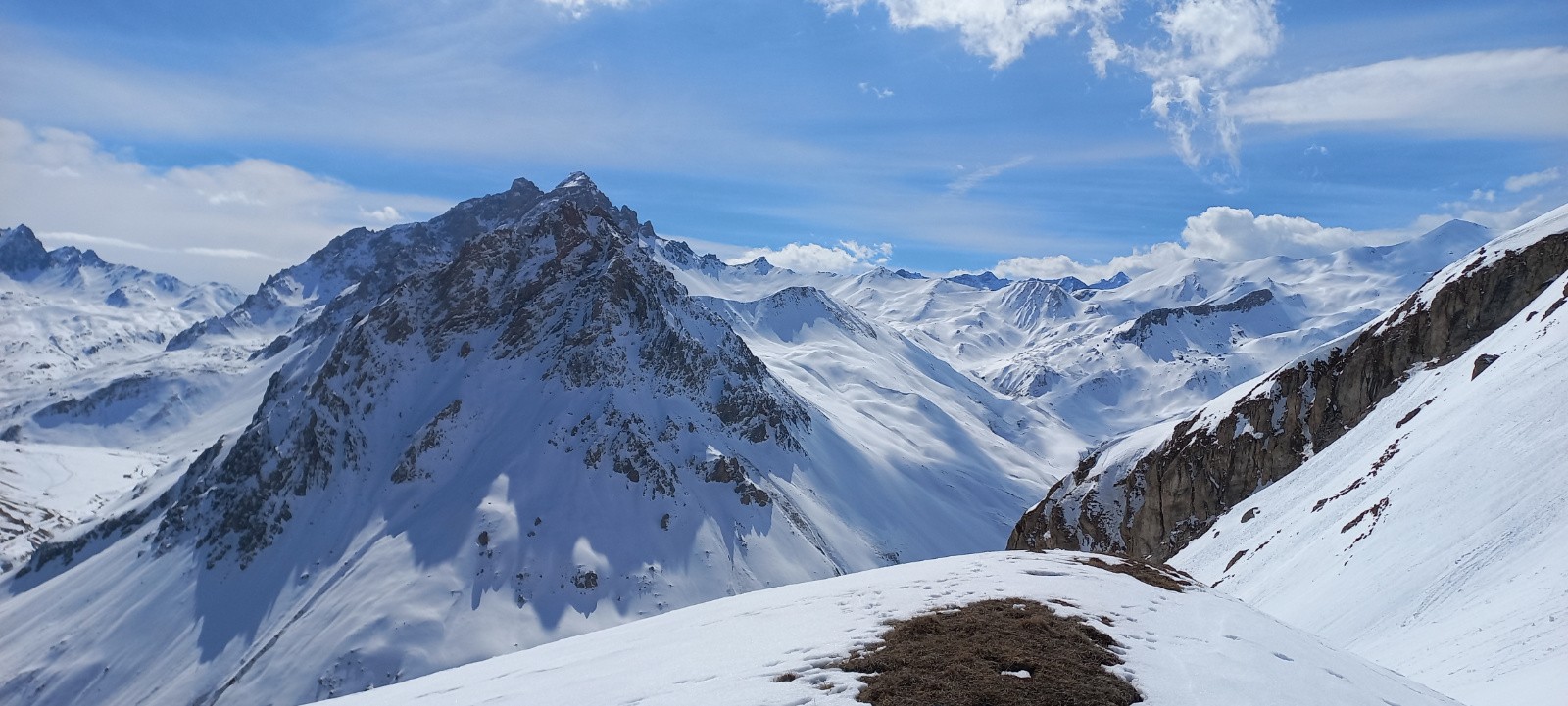Une petite dernière au terme d'une semaine à écumer le secteur et avant de prendre la route. Jolie sortie, courte avec des pentes modérées, mais très belle et intéressante. Parfaite pour une première par exemple. Neige de printemps revenue tôt (face Sud) excellent ski. Croisé un troupeau de chamois.