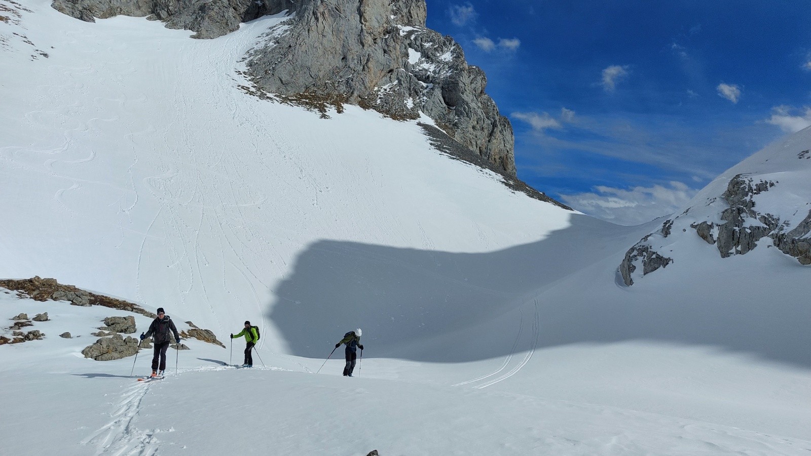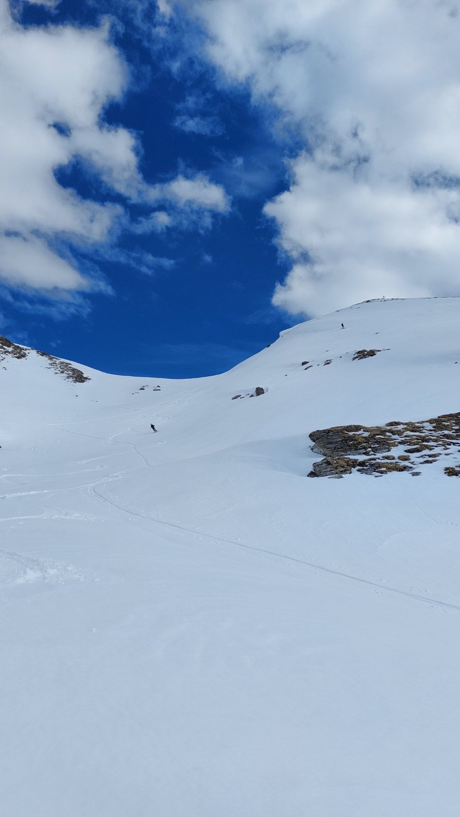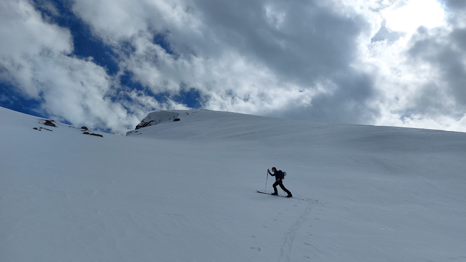 Conditions pour le ski : neige lourde, moquette à poils longs, mais plutot bonne à tres bonne dans un itineraire quasiment vierge de trace