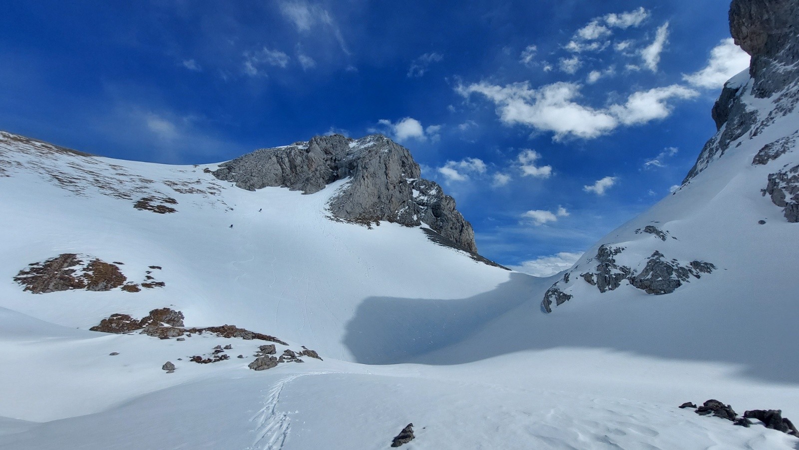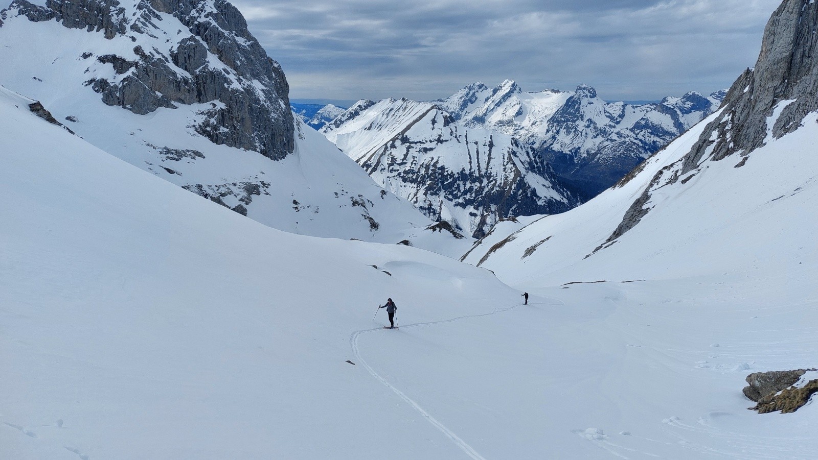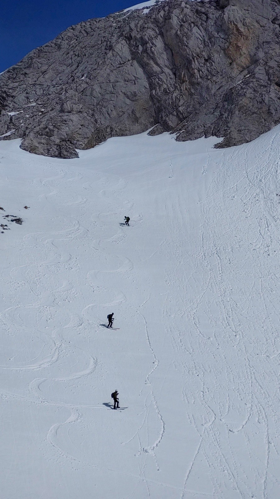 Conditions pour le ski : neige lourde, moquette à poils longs, mais plutot bonne à tres bonne dans un itineraire quasiment vierge de trace