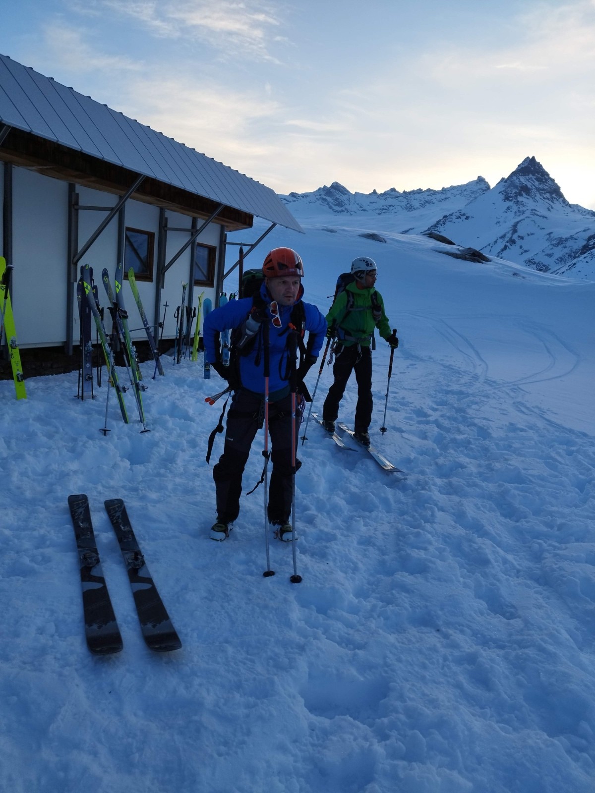 Arrivée au Refuge des Evettes, bel accueil plus de monde en ce Samedi Soir mais bonne ambiance. Contraste saisissant: ici il fait 24° dans la piece, les poêles tournent bien!