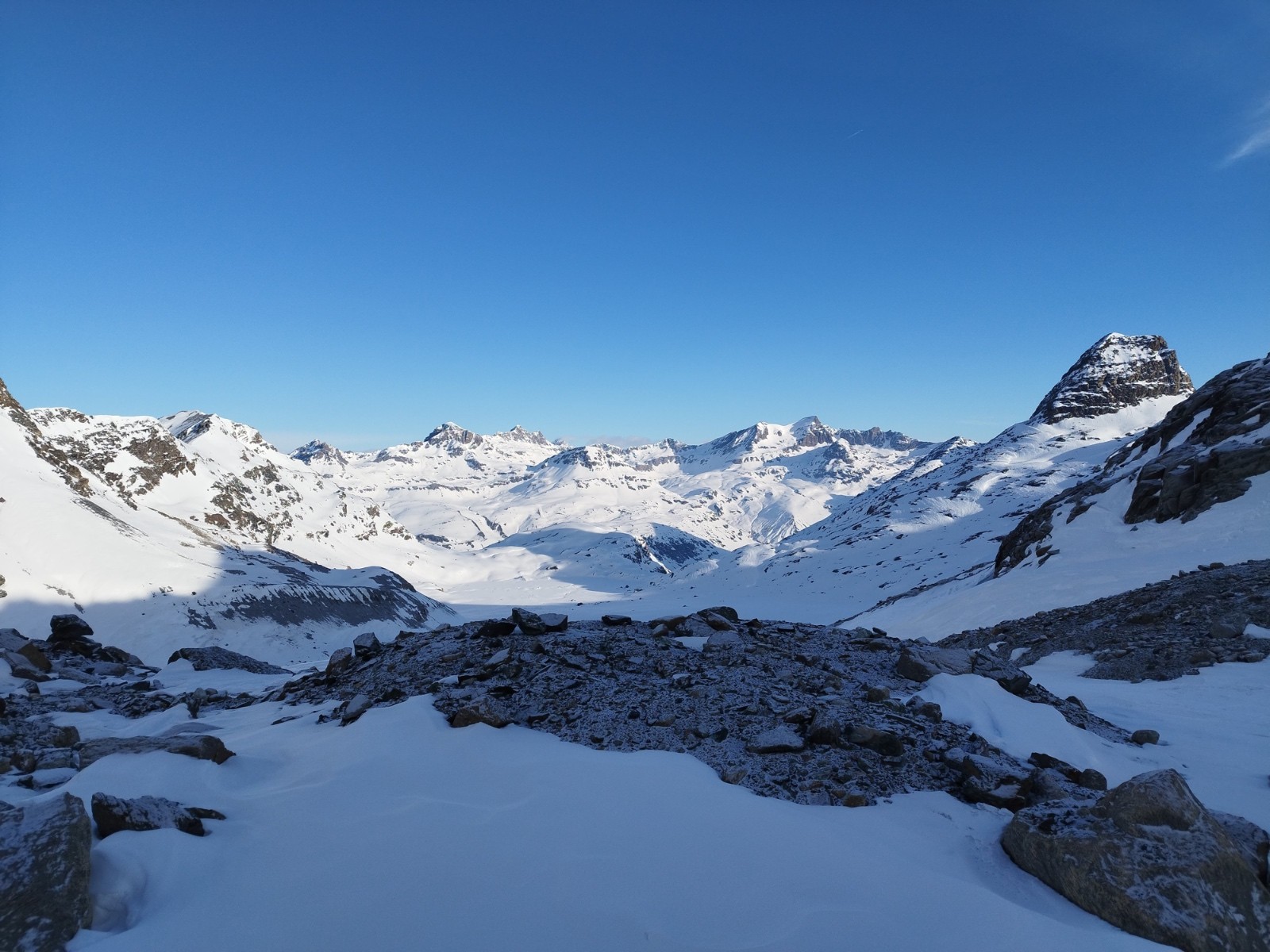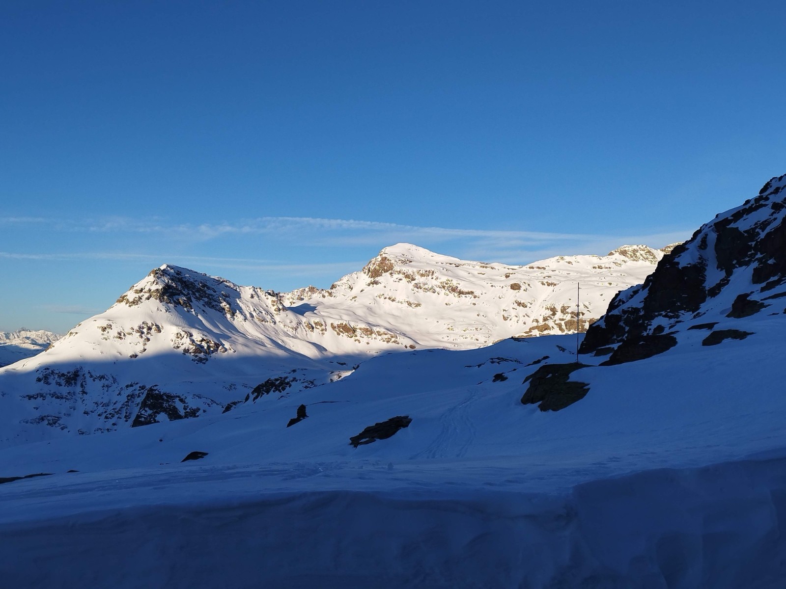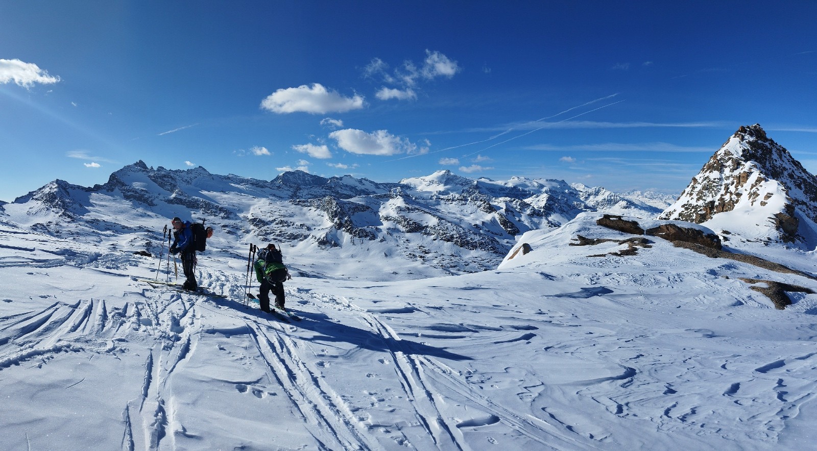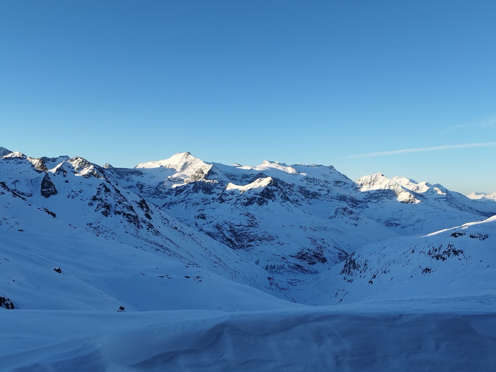 rares zones de poudres, neige durcit par le vent dans l'ensemble, neige de printemps sur les bonnes expositions.Bon enneigement dans l'ensemble.