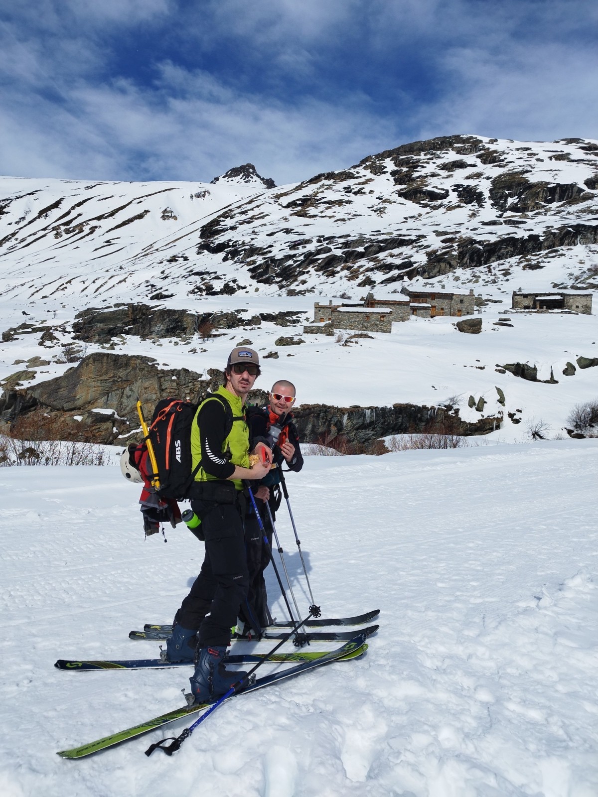 Une presque classique en "Hot Maurienne" pour 4 diots qui se connaissent depuis bientôt 20 ans. Petit hic, pour 3 d'entre eux c'est la première sortie de l'année... Trop de projets, pas assez de temps. Mais on prend rdv pour ce petit trip et grand bien nous en a prit. La montée au Carro est plutôt longuette, et surtout chaude 🥵 avec nos gros sacs et ce long plat pour attaquer la montée au niveau de la Duis. Les diots suent, comme prévus! Petit bonus après avoir laissé du matos au refuge en direction du très joli col du Carro et ses mosaïques de "Kappla" en dalle de pierre. Vue sur le grand Paradis qui est SEEEECCC. C'est effrayant.