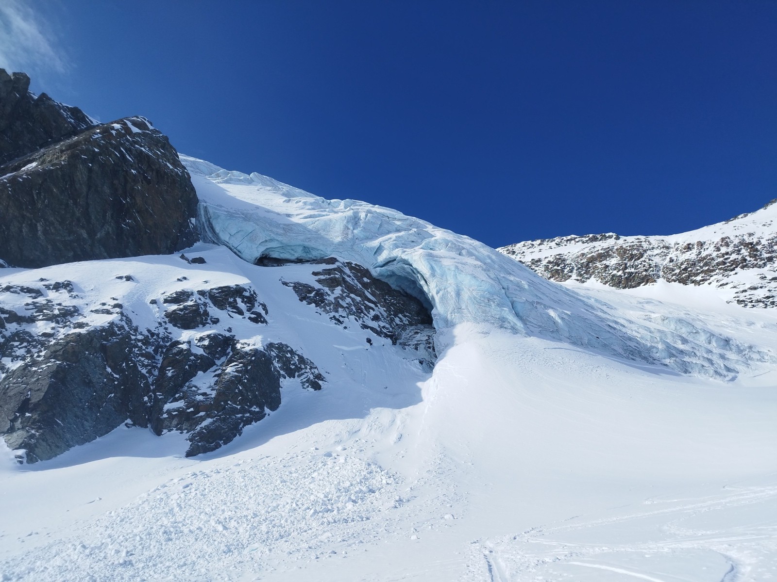 petite plaque partie sous la selle sans doute mercredi ou jeudi. Purge sous l'ouille du Trieves ouest. Petite chute de serac dans la zone 3200m en montant l'Albaron.