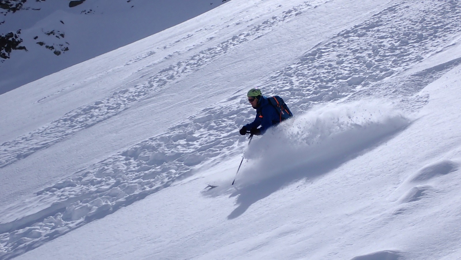 Conditions pour le ski : médiocre en dessous du lac de Crop avec neige dure à peine revenue à la descente rive droite avec un court déchaussage.