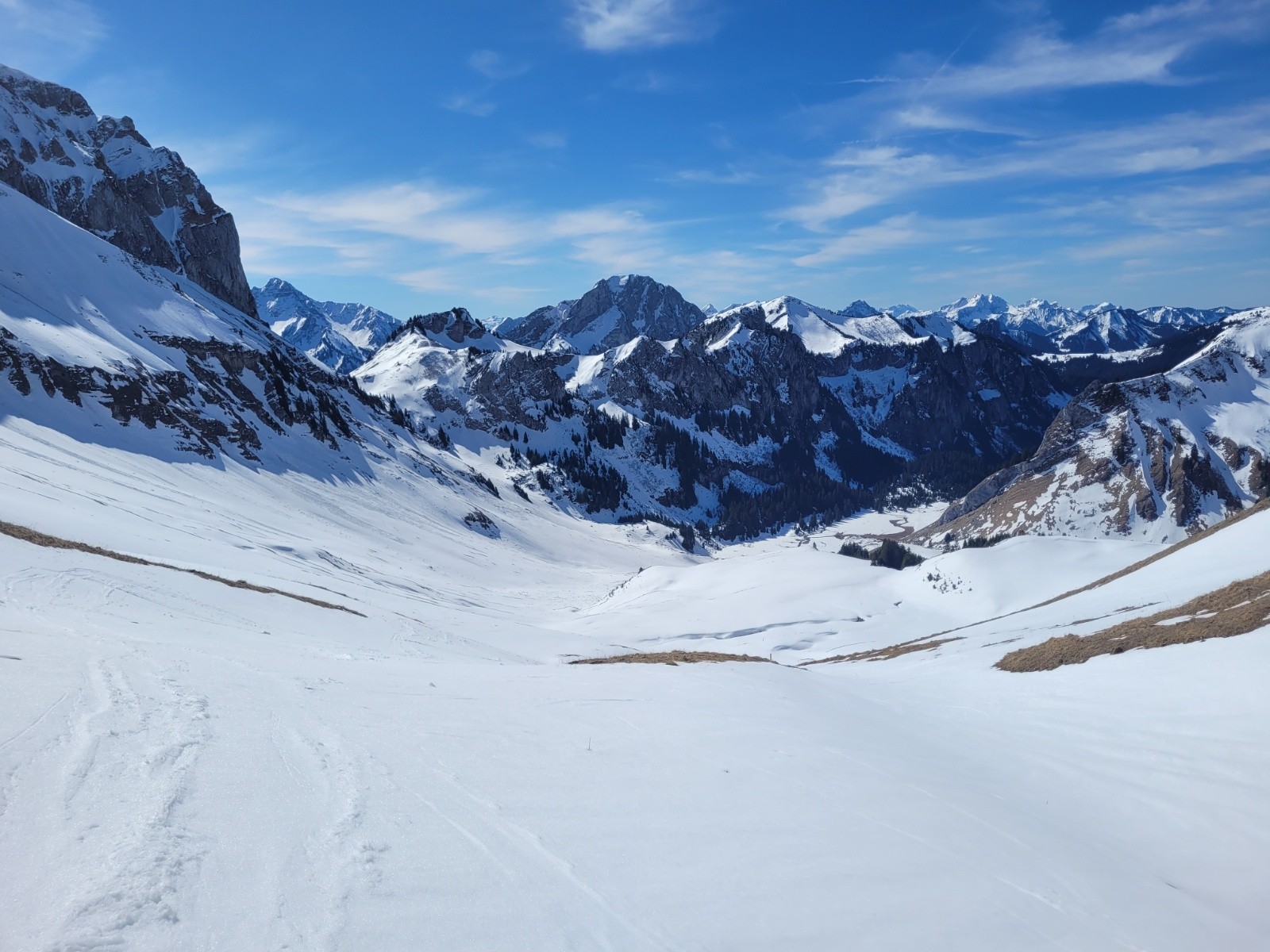 Conditions pour le ski : Bonnes. Jusqu'à Bise, peu de neige mais sur la route ça passe encore. Au-dessus de Bise, ne pas skier trop vite abondance de blocs ou pierres apparentes.
