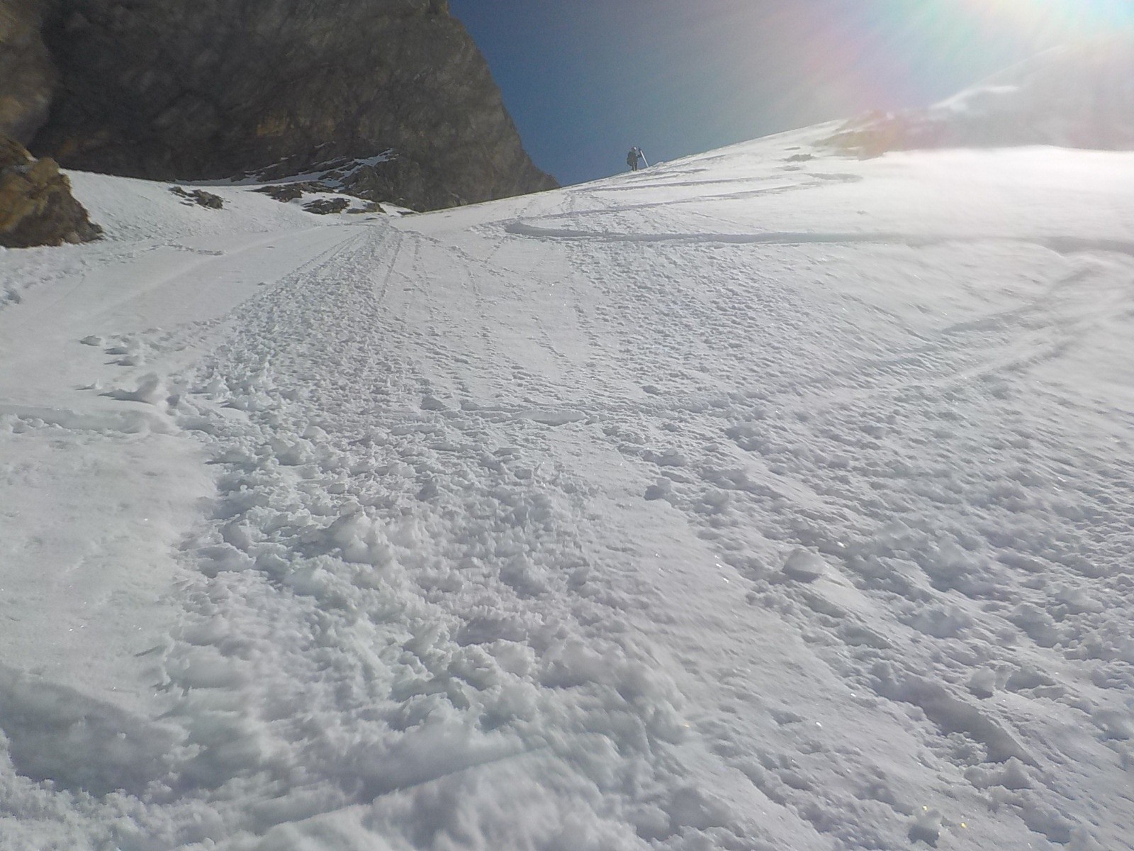 Conditions pour le ski :Superbe poudreuse dans cette belle petite variante.