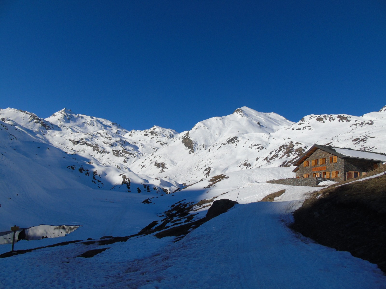 Descente sympa avec de la neige assez sympa et même pas de monde sur le hors piste de la cime Caron à l'exception d'un gros groupe d'ados bien marrants qui s'amusaient à skier sur la petite portion d'eau libre au bout du lac sous le refuge.
