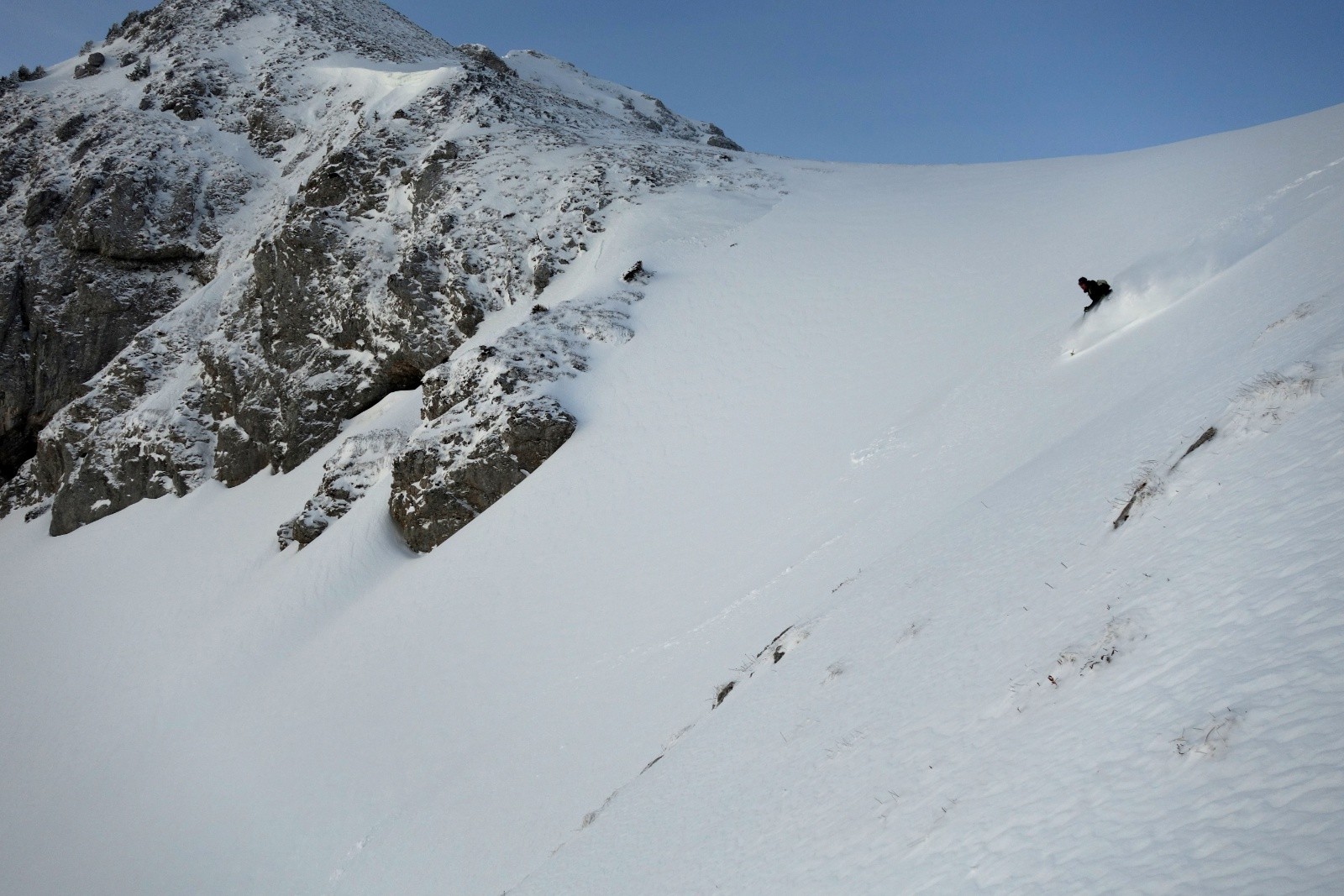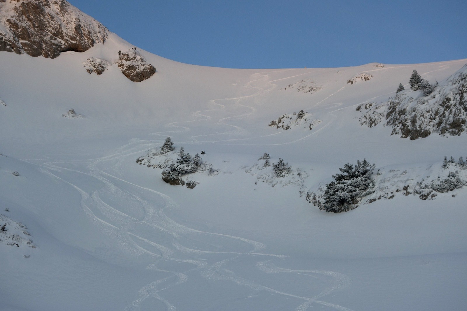 On avait loupé la précédente, il fallait pas louper celle là. Des conditions excellentes dans la combe au dessus de la station.