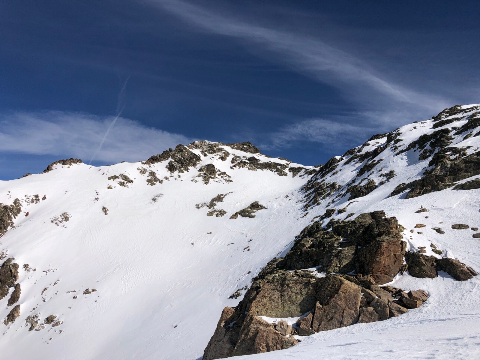 Le couloir pour rejoindre le lac Fer est pourri sur sa partie haute la glace reste bien présente même passé 14H.