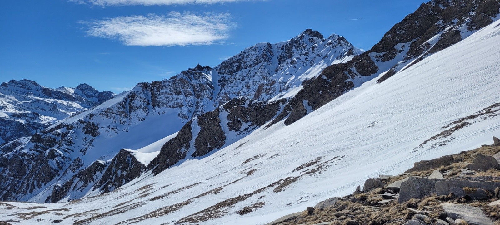 Une belle montée vers la Pointe Joanne (la fin en crampons) et sa magnifique vue sur le Viso et le secteur.