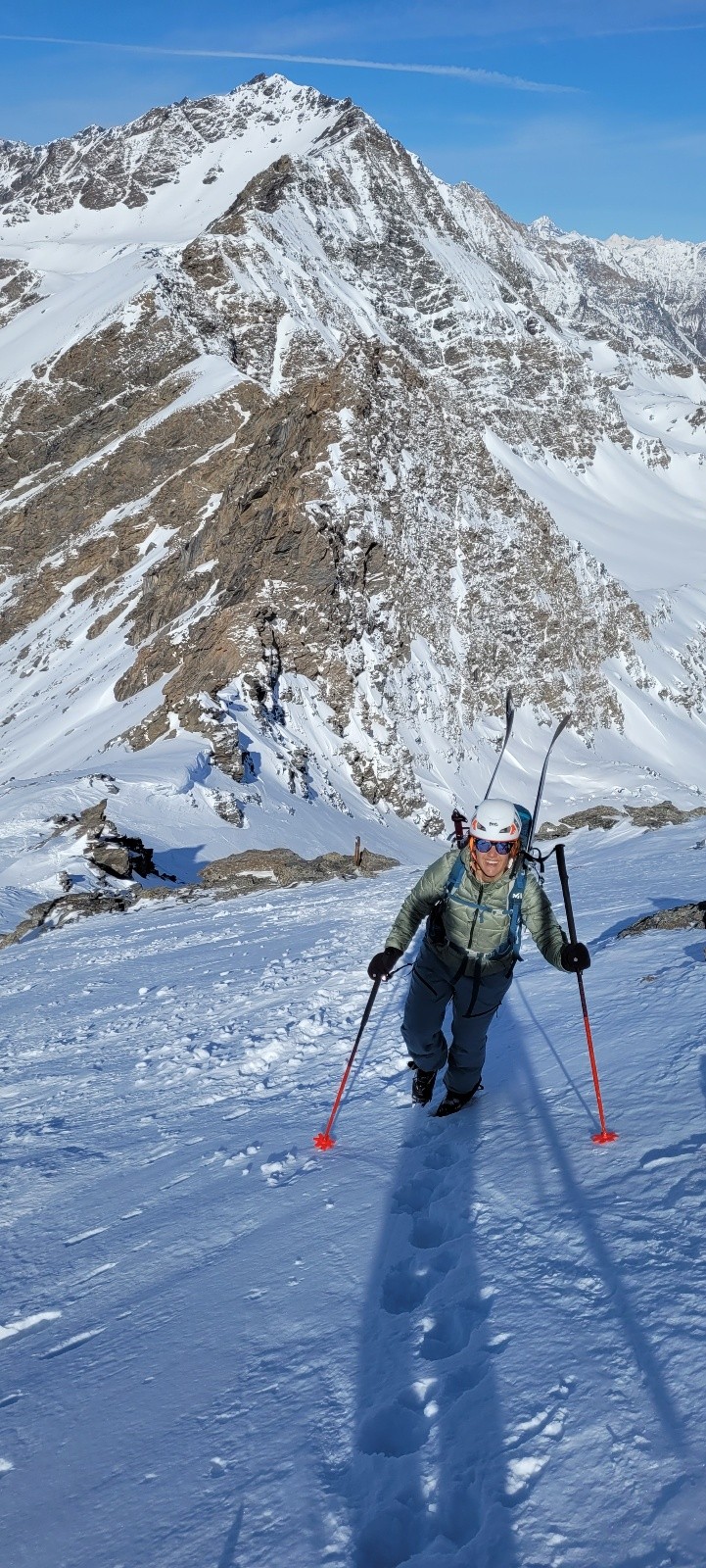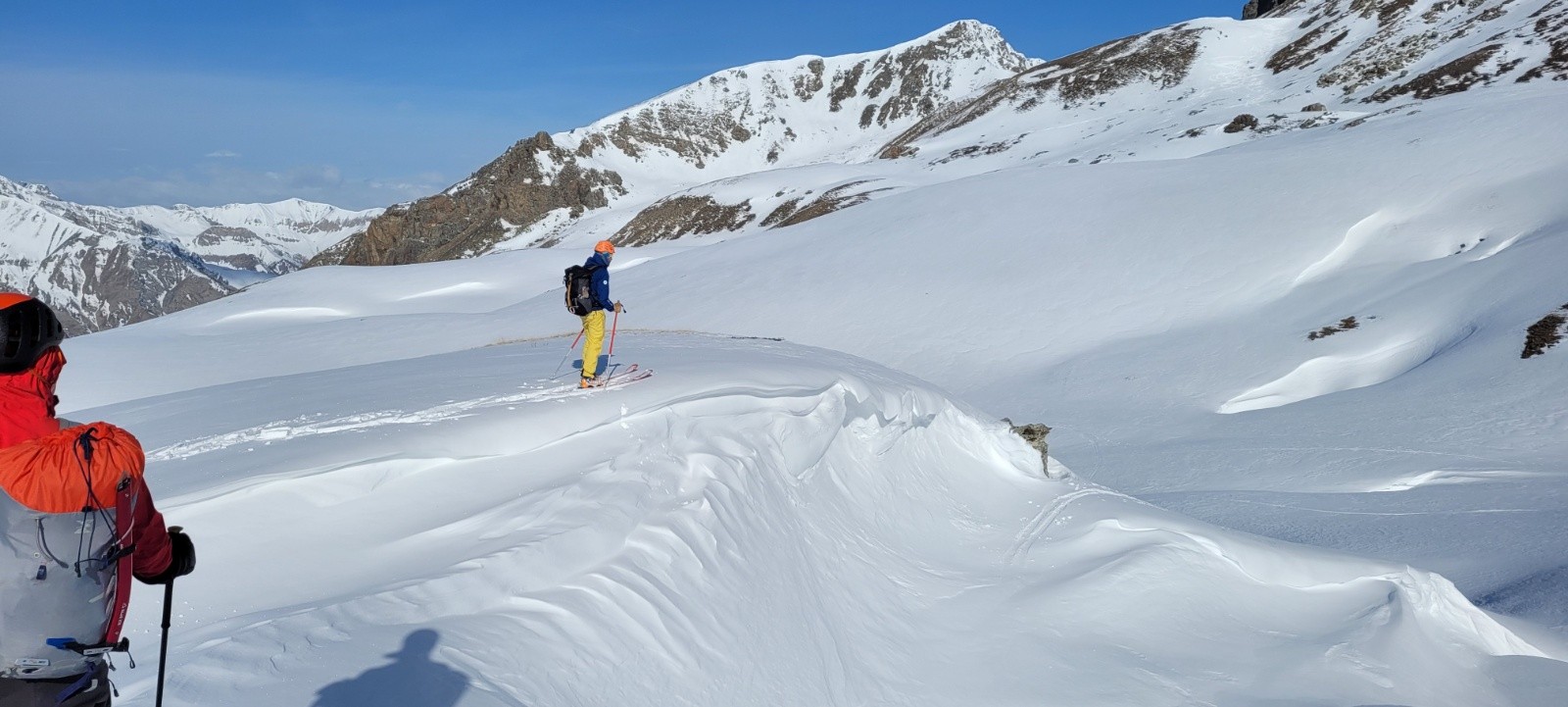 Une belle descente encore en neige fraîche plus ou moins travaillée par le vent, s'améliorant en descendant.