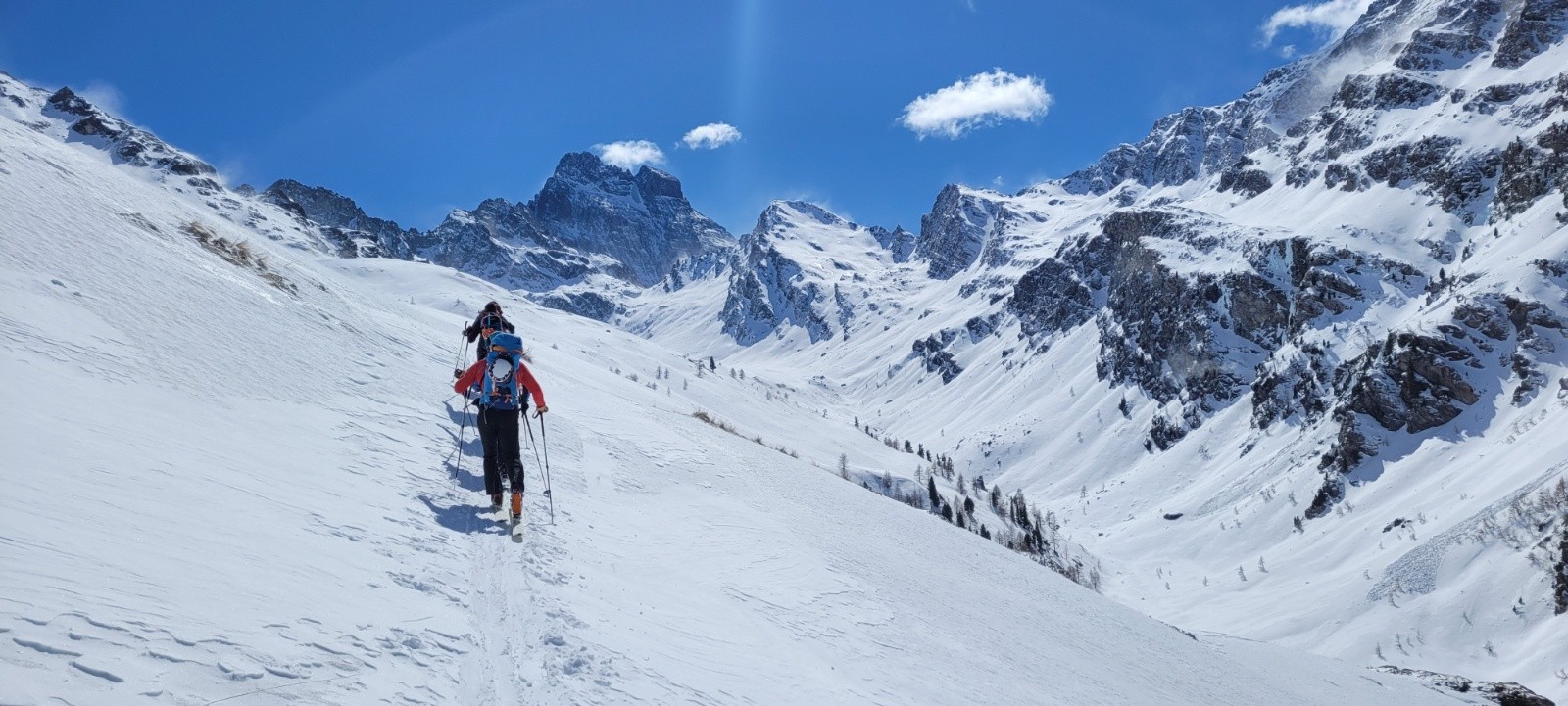 Nous devions partie à 10 + 2 guides pour un itinéraire Alpin grandiose en Suisse (la couronne Impériale de Zinal) mais la météo étant mauvaise ce week-end en Suisse, pas question de traîner nos spatules entre 3 et 4000 par mauvais(e) temps (nivo), nous nous somme repliés sur le Queyras et son soleil. Une découverte pour moi.