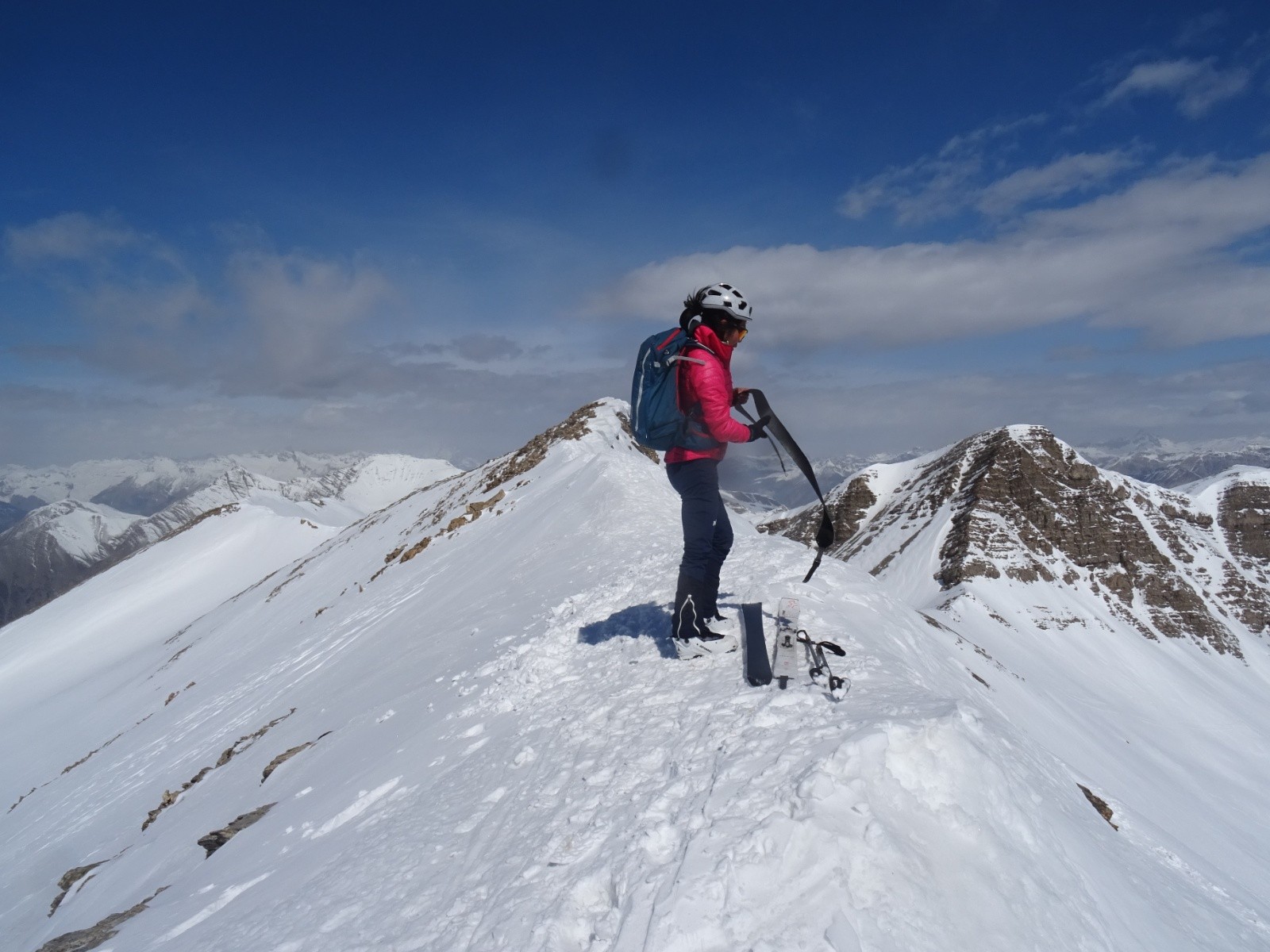 Conditions pour le ski : neige variable mais bien agréable dans l'ensemble, un petit 4* (poudre tassée un peu ventée sur le haut, franchement collante sur le bas, bonne voire très bonne dans la partie intermédiaire - avec soit de la poudreuse extra sur fond dur soit de la neige transformée façon 'moquette', suivant les orientations choisies et les sections)