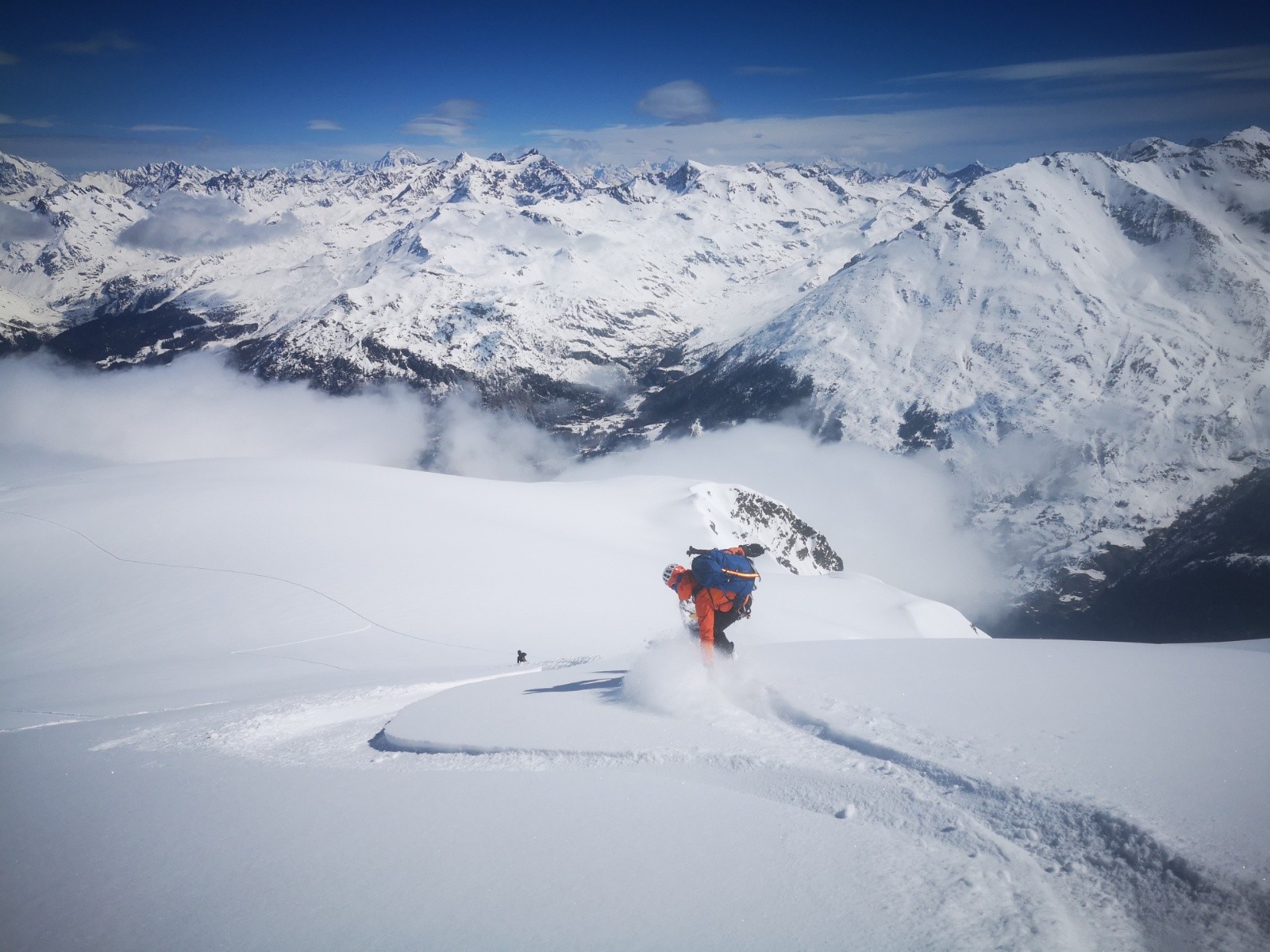 Conditions pour le ski : Tres bonne poudre du sommet s'alourdissant un peu vers les lances 2300 Crouté et quelques passages en moquette pour le reste