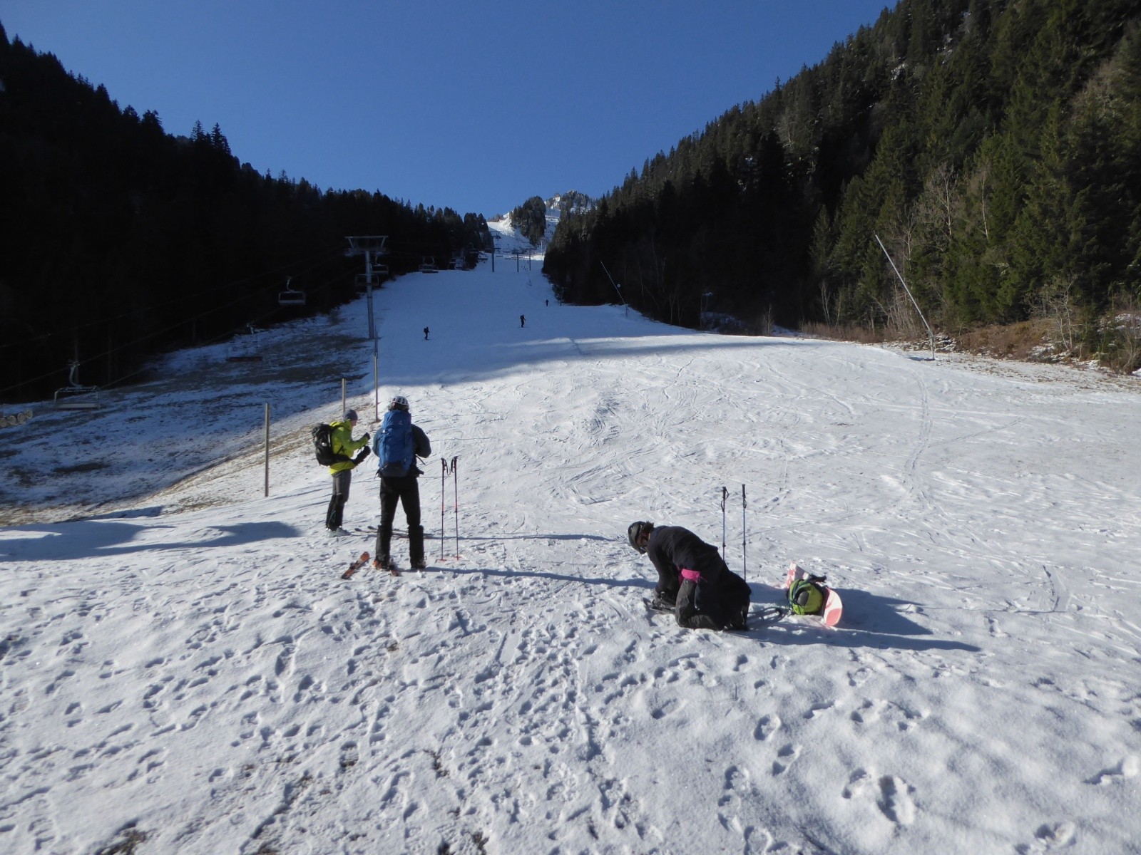 1er jour: Neige dur le matin, un peu pourrie l'après midi, il manque un peu de neige en forêt avant le lac des Pourettes, ca passait limite en montée, impraticable en descente, la piste de Casserousse passe encore bien grâce aux canons à neige!