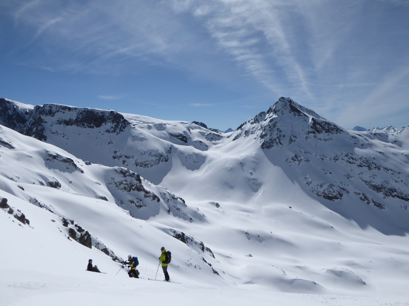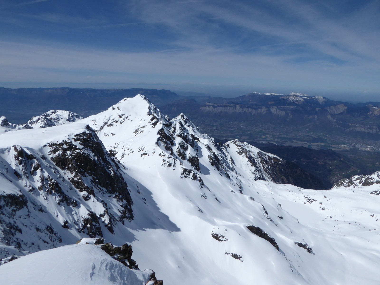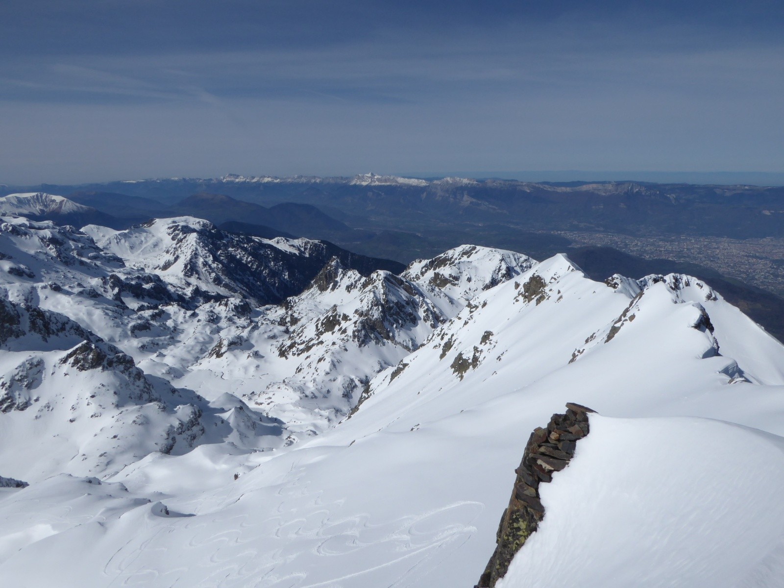 Belle journée montée depuis le refuge de la Pra par la face sud de La Grande Lance de Domène, descente par la face sud-est excellente poudreuse et moquette jusqu'au Lac du Grand Doméno, montée sur la Croix de Belledonne, descente excellente poudreuse jusqu'au Lac de Doménon et moquette***** jusqu'au refuge de la Pra,