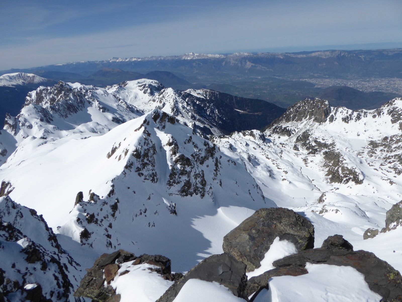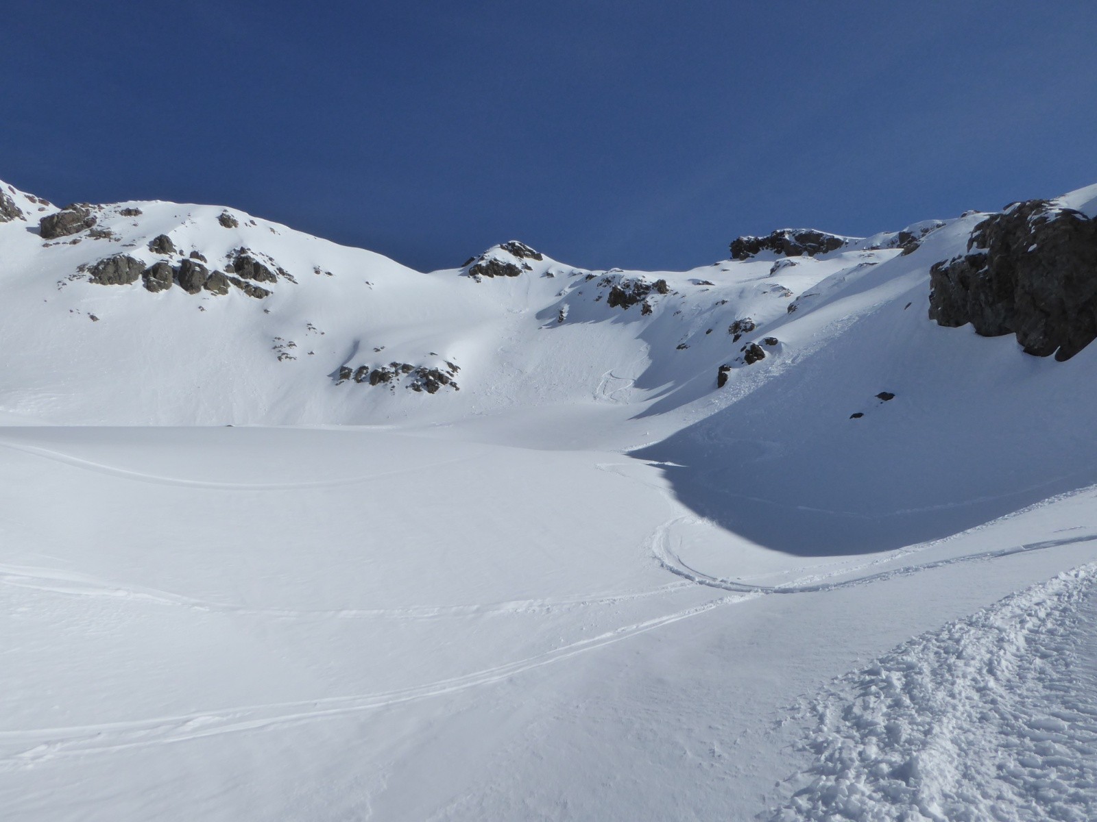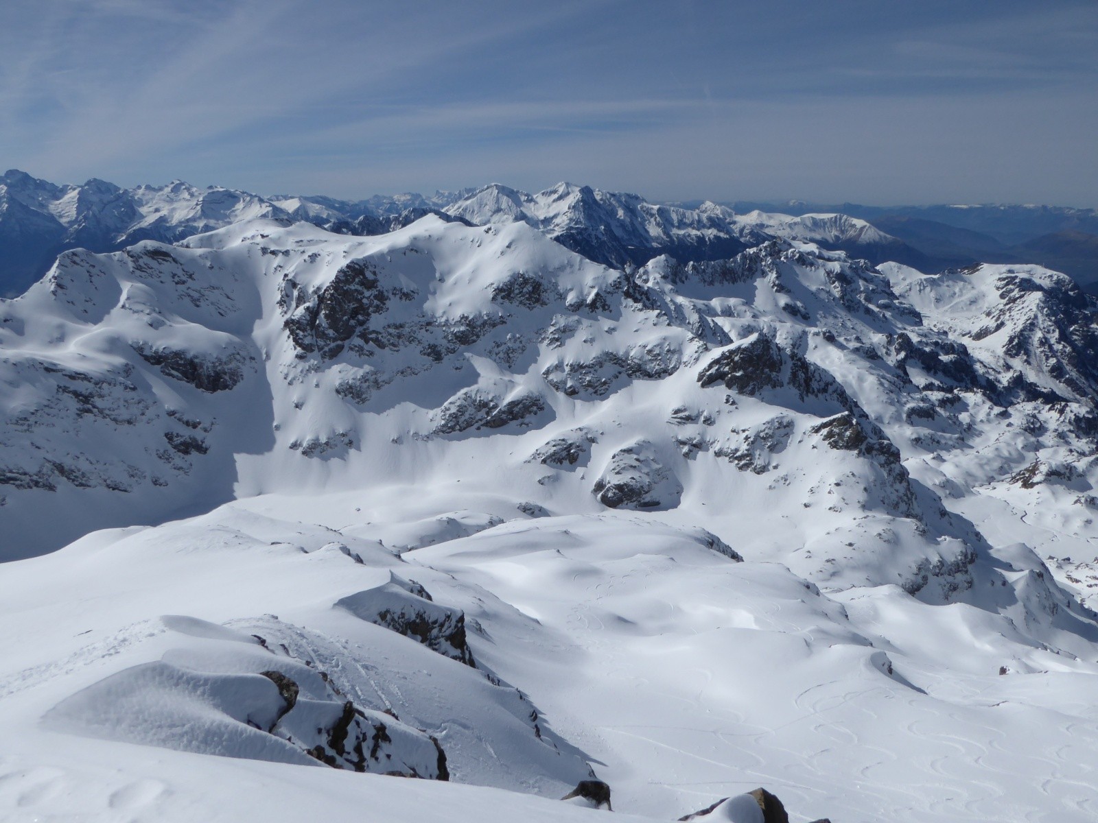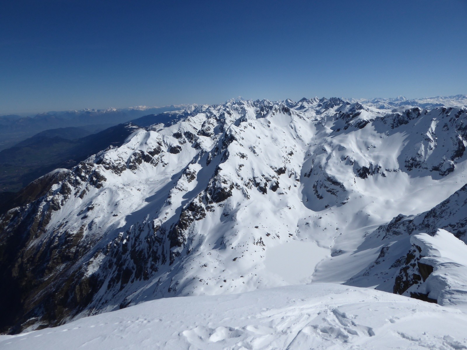 Belle journée montée depuis le refuge de la Pra par la face sud de La Grande Lance de Domène, descente par la face sud-est excellente poudreuse et moquette jusqu'au Lac du Grand Doméno, montée sur la Croix de Belledonne, descente excellente poudreuse jusqu'au Lac de Doménon et moquette***** jusqu'au refuge de la Pra,