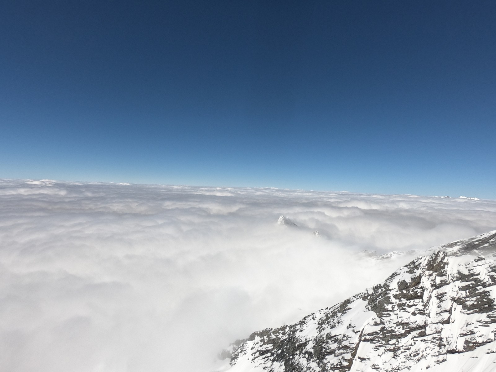 Retour horrible dans le brouillard, neige détruite et pertes d'équilibres. Pas de regrets pour la voile.