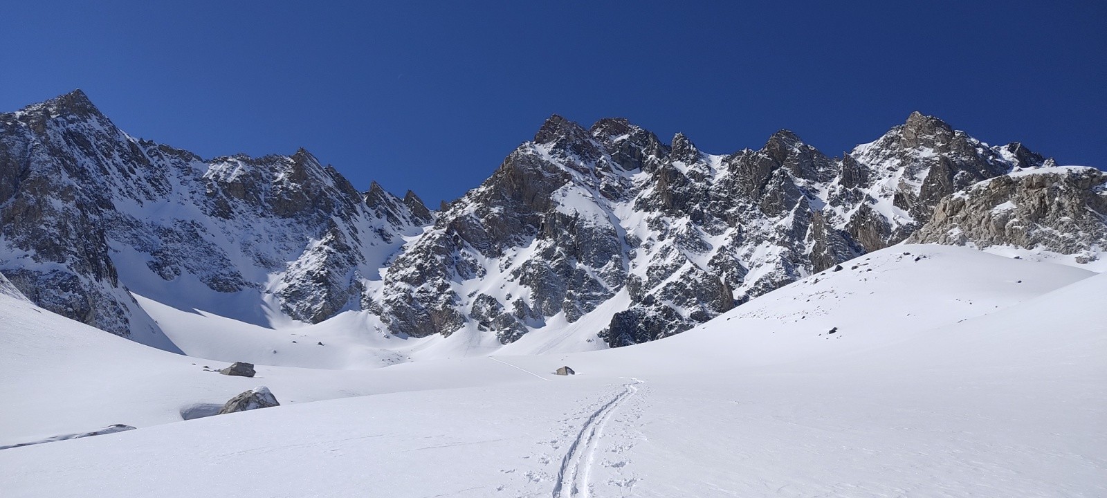 Topos associés : Aiguille Large, Tour par les vallons de Mary et de la Teste Aiguille de Chambeyron, Couloir Jean Coste